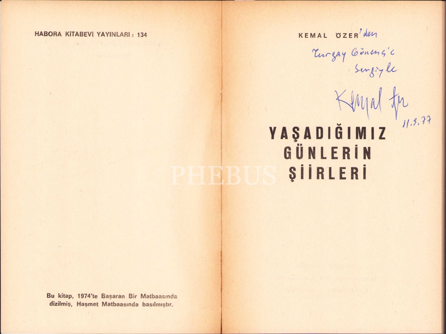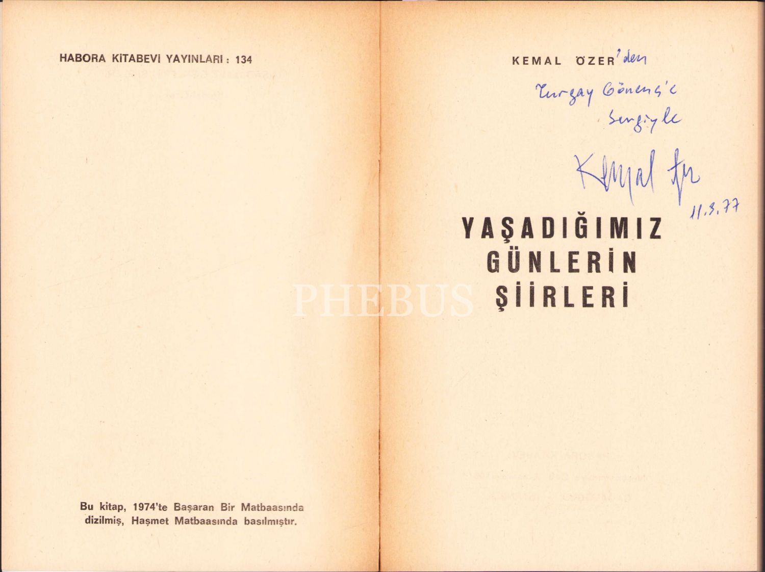 Yaşadığımız Günlerin Şiirleri, Kemal Özer'den imzalı ve ithaflı, ilk baskı 1974, 96 sayfa