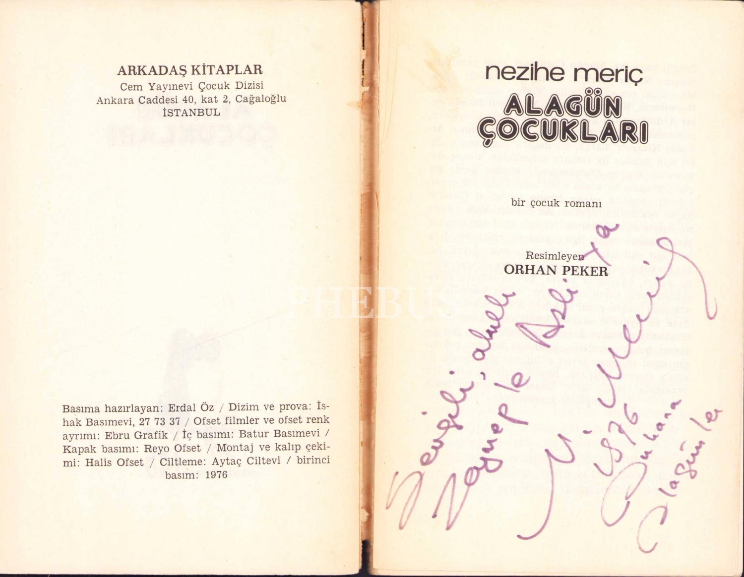 Alagün Çocukları -Çocuk romanı-, Nezihe Meriç'ten imzalı ve ithaflı, 1976, 96 sayfa