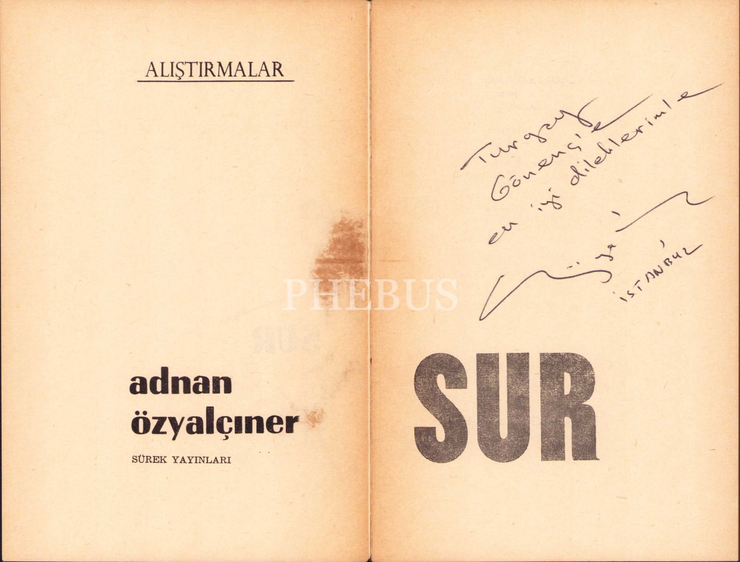 Sur -Hikayeler-, Adnan Özyalçıner'den imzalı ve ithaflı, 1963, 80 sayfa