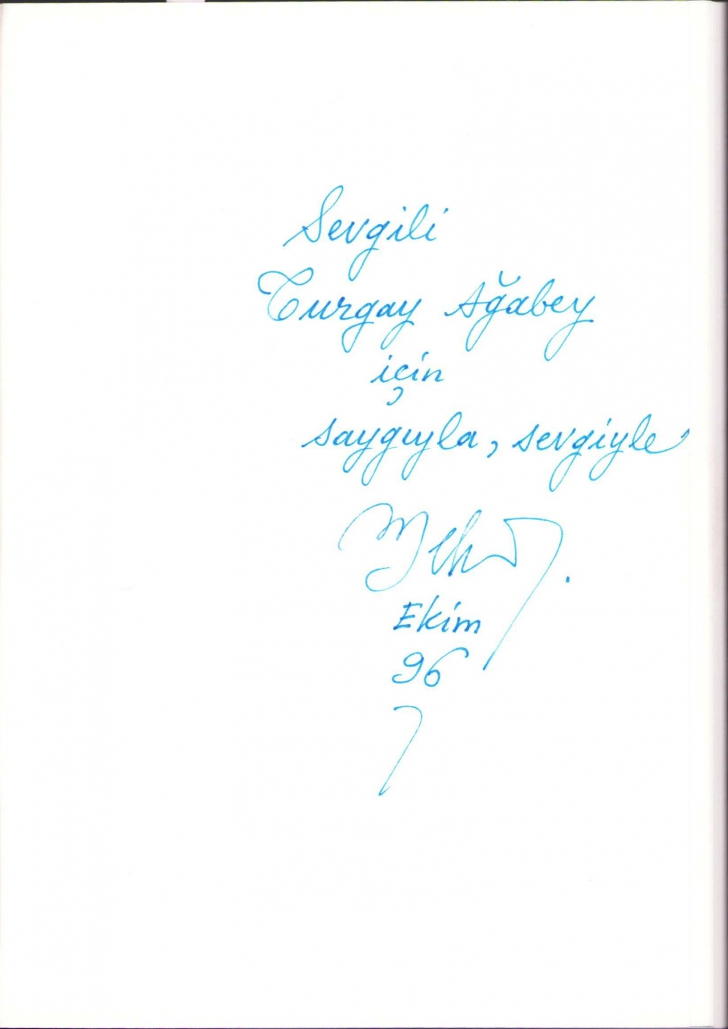 İthaf "Sevgili Turgay ağabeye saygıyla ve sevgiyle" şeklindedir