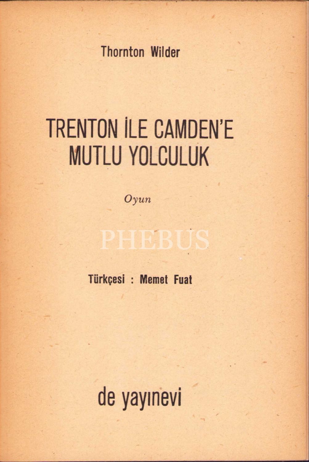 Trenton ile Camden'e Mutlu Yolculuk -Oyun-, Thornton Wilder, Çeviri Memet Fuat, 1961, 27 sayfa