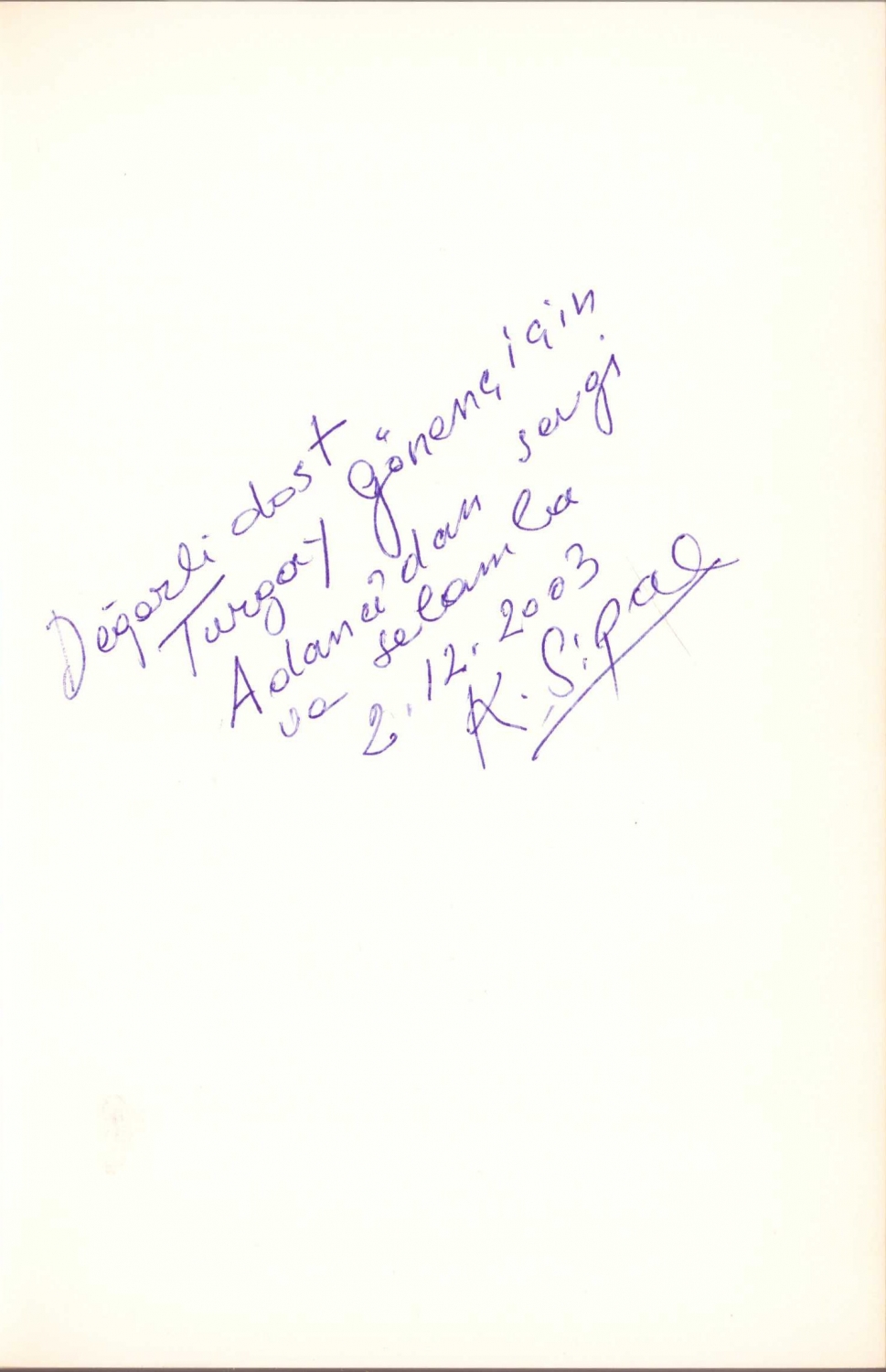 İthaf "Değerli dost Turgay Gönenç için Adana'dan sevgi ve selamla" şeklindedir