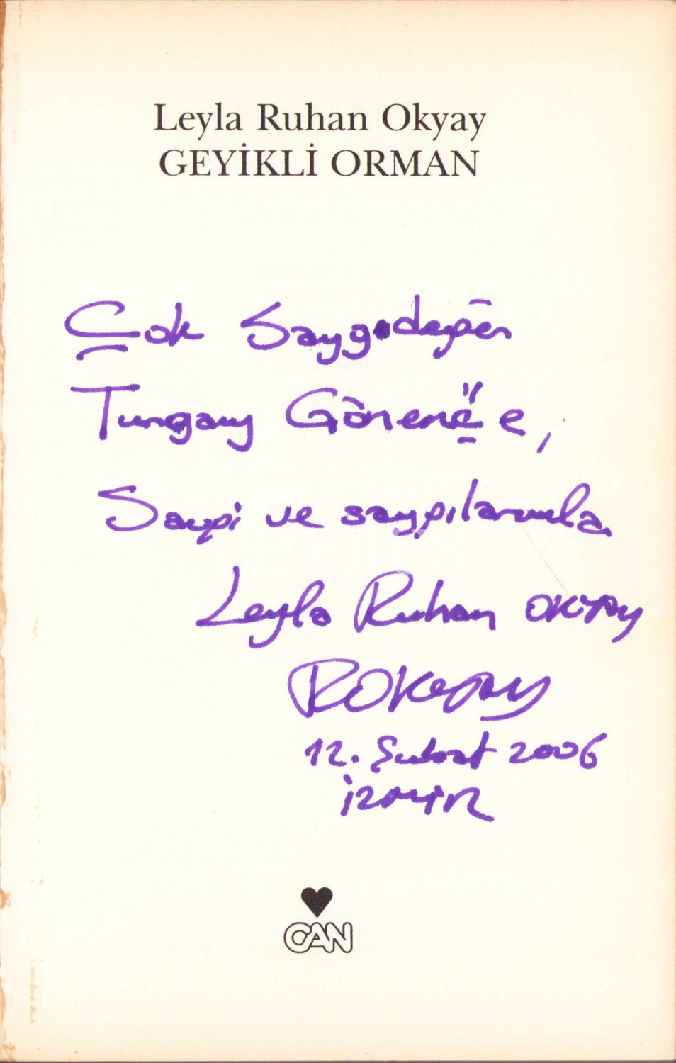 Geyikli Orman -Öyküler-, Leyla Ruhan Okyay'dan imzalı ve ithaflı, 2003, 103 sayfa
