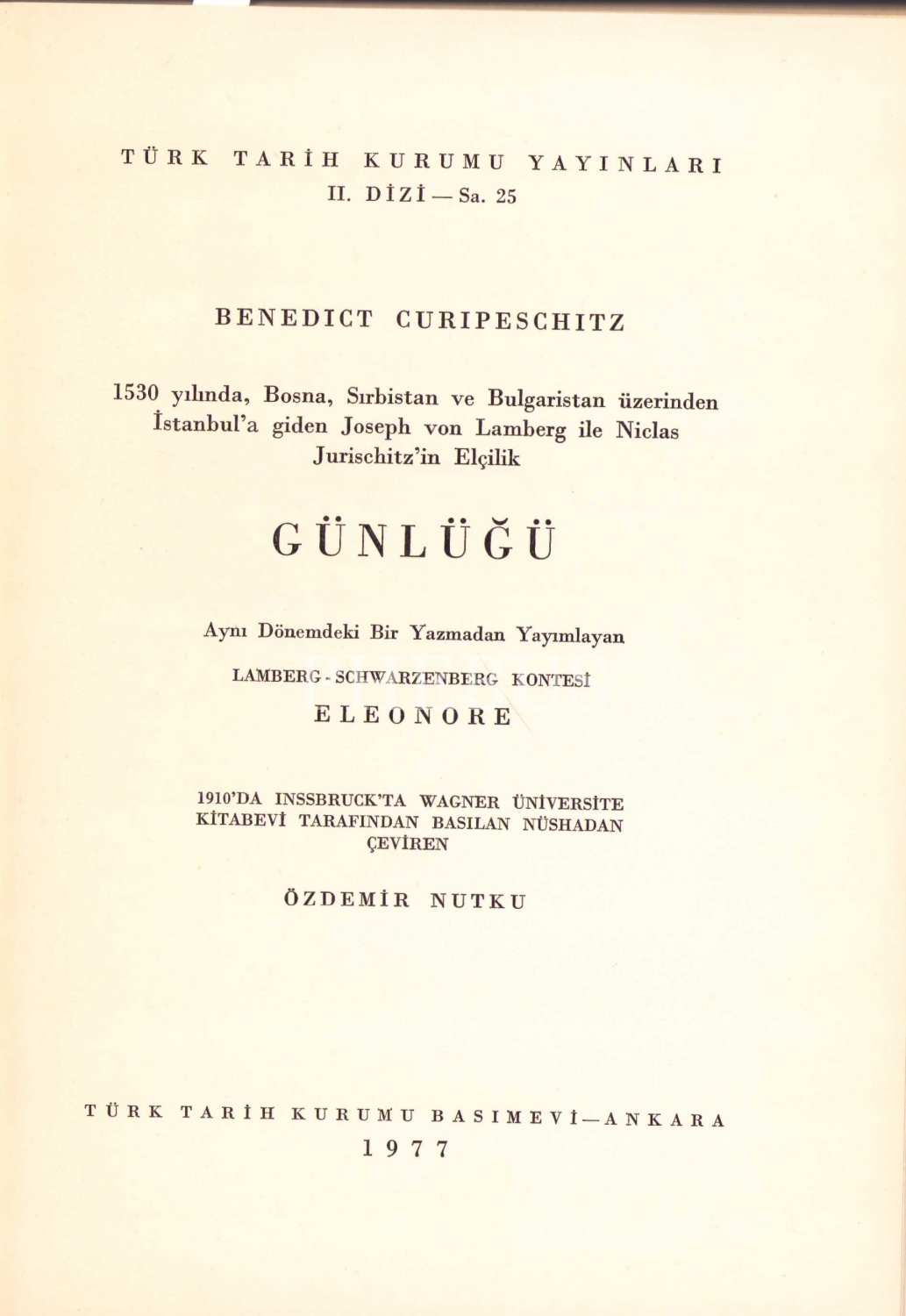 Yolculuk Günlüğü 1530, Benedict Curipeschitz, Çevirmeni Özdemir Nutku'dan imzalı ve ithaflı, 1977, 56