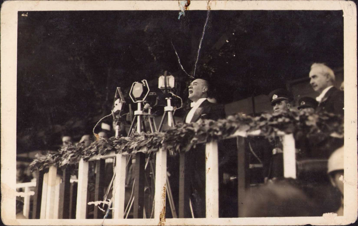 Atatürk'ün 10. Yıl Nutku, 29 Ekim 1933 tarihli, İsmet İnönü ile beraber, fotoğraf üst kısımdan kırık, haliyle