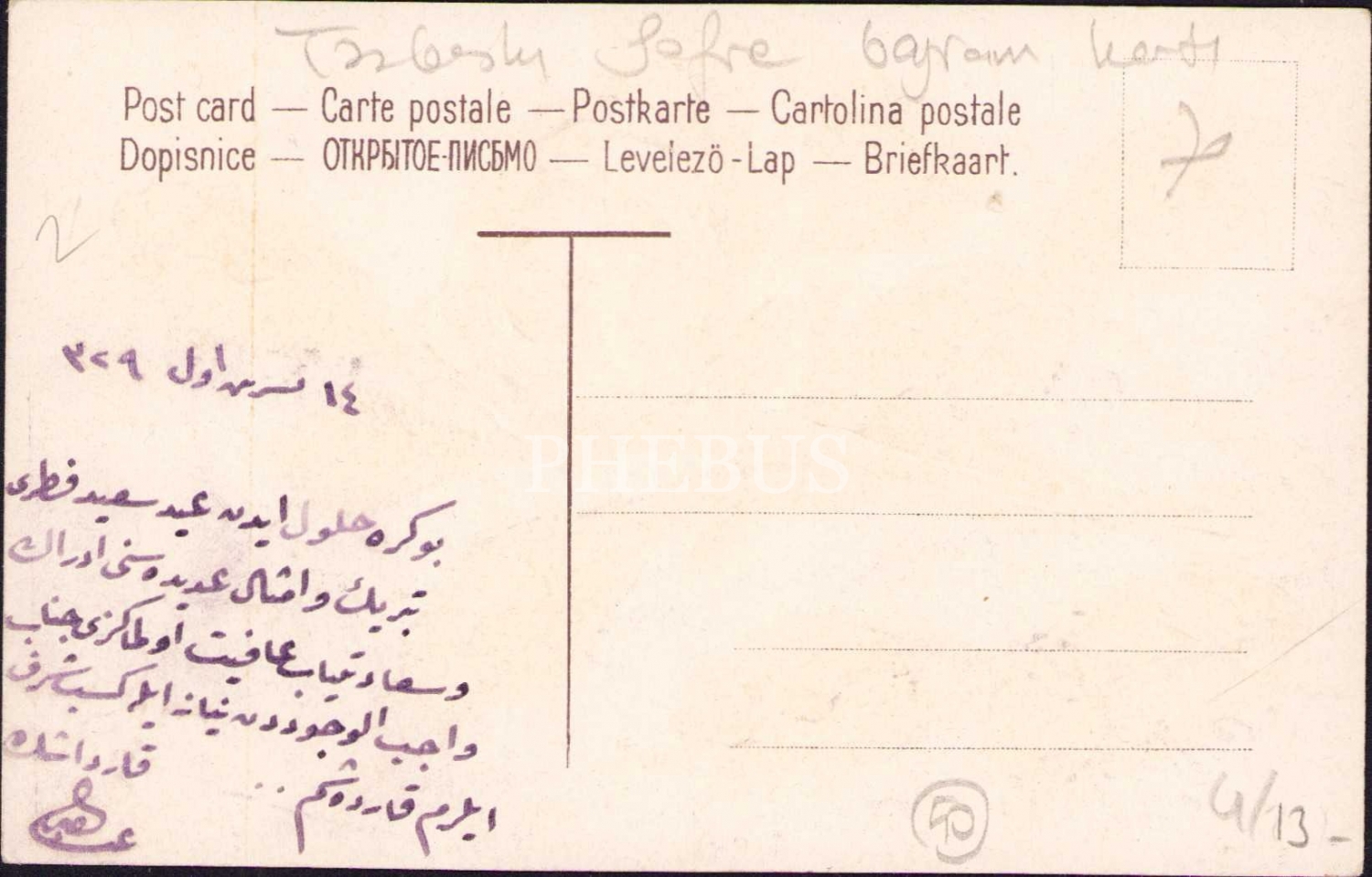 Arkasında 1329 tarihinde kardeşine ithaf ederek yazılmış bayram tebriği bulunmaktadır.
