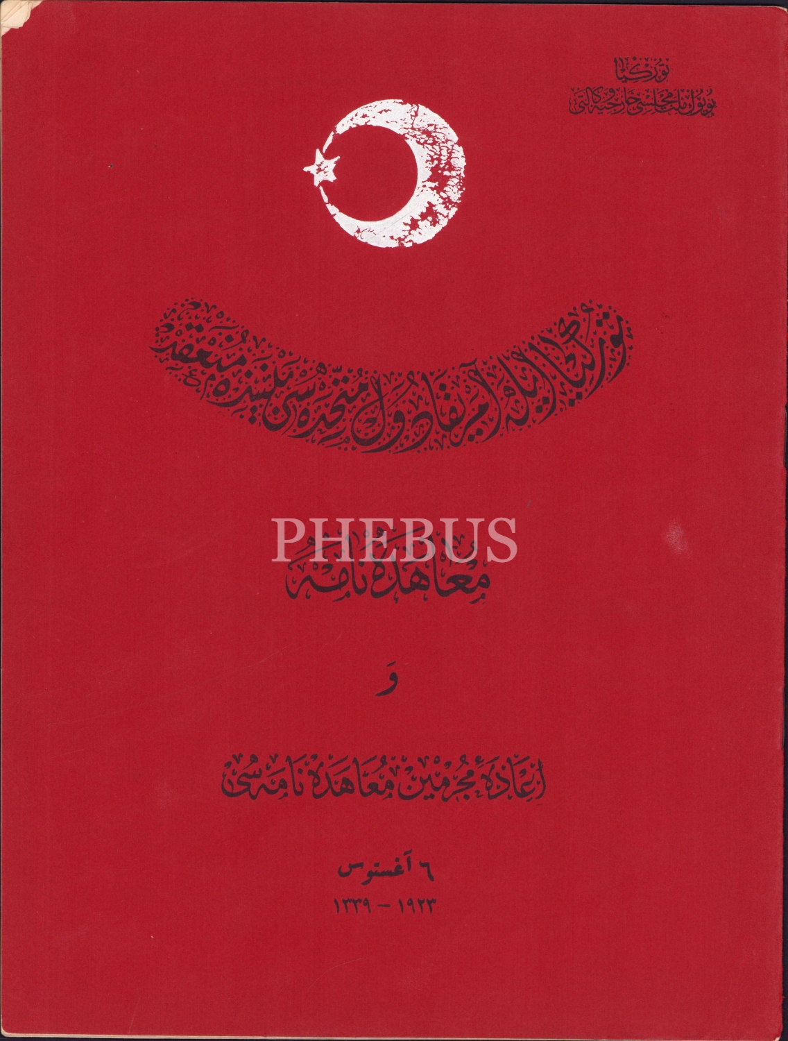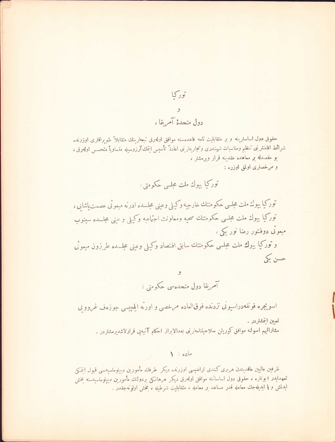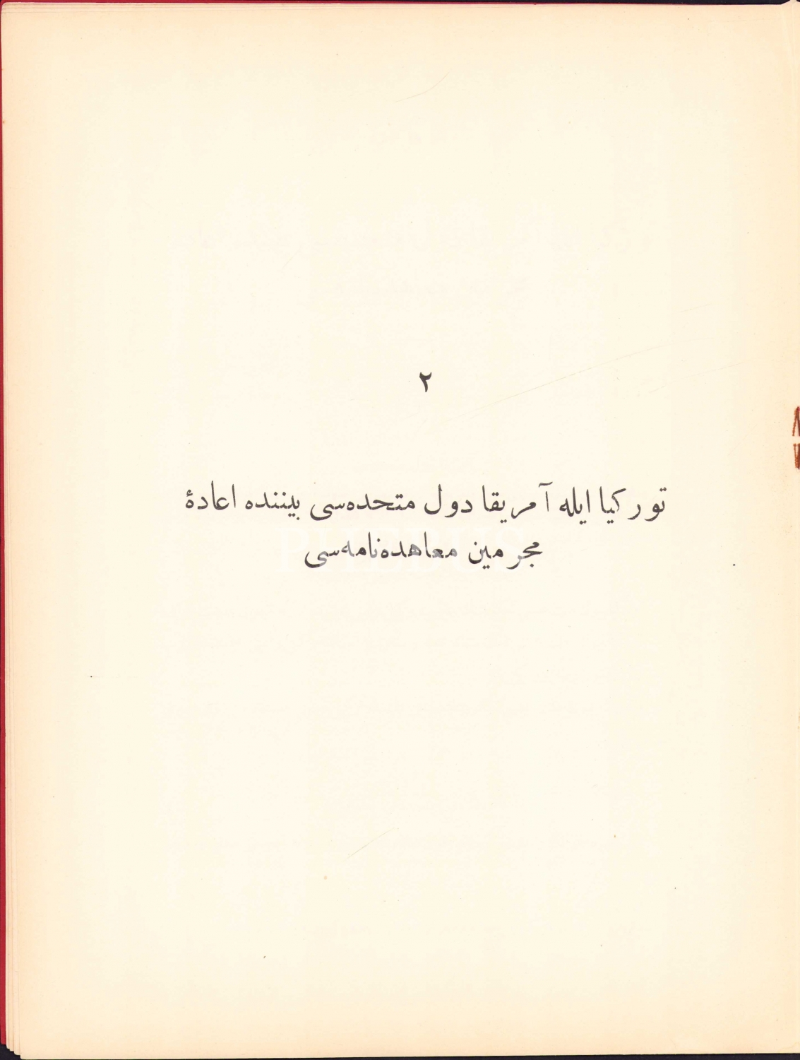 Türkiye ile Amerika Arasında yapılan Osmanlıca suçlu iade antlaşması [Düvel-i Müttehidesi Beyninde Mün'akid Muahedename ve İade-i Mücrimin Muahedenamesi], 6 Ağustos 1923 [1339], Türkiye Cumhuriyeti Hariciye Vekaleti, 23 sayfa, 24x30 cm, ÖZEGE; 21684