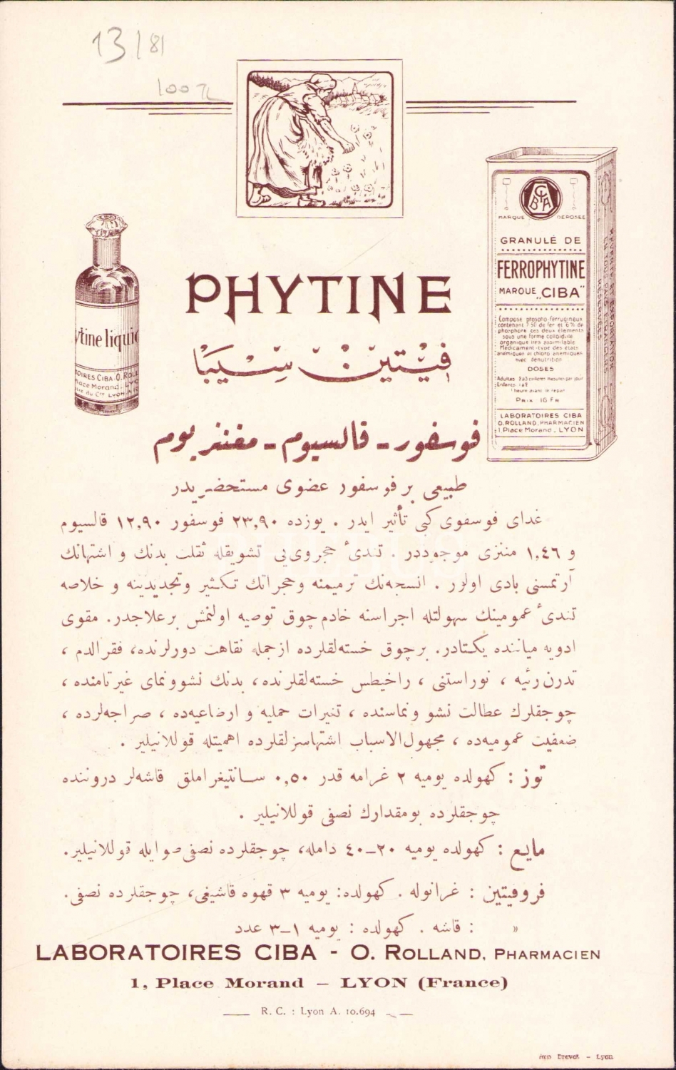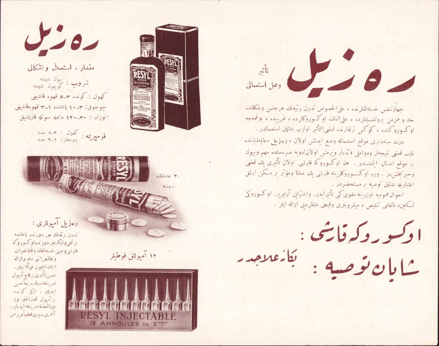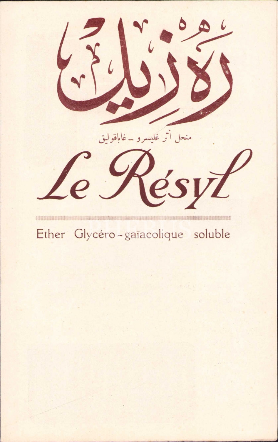 Osmanlıca Fransızca Resyl: Eter Gliserol ilaç tanıtım kitapçığı, 4 sayfa, 14x21 cm