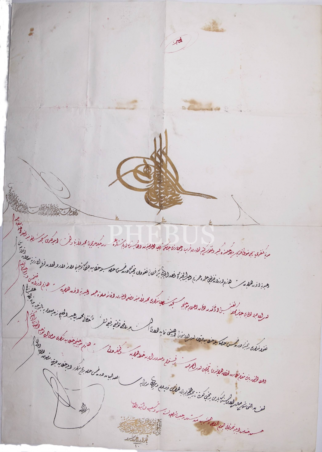 Sultan II. Abdülhamit tuğralı berat, 1296 yılında Çankırı'da bulunan camiye yardım konulu, 52x76 cm