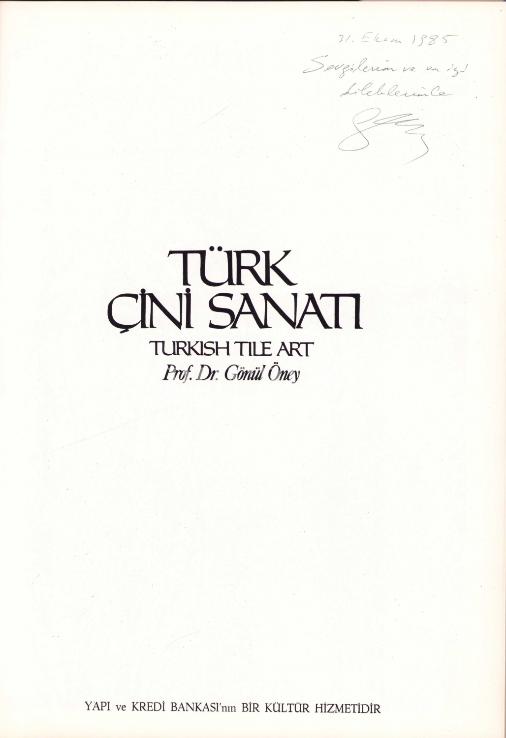 Türk Çini Sanatı, Prof. Dr. Gönül Öney'den ithaflı ve imzalı, İstanbul 1976, şömiz yıpranmış, 160 sayfa, 23x32 cm