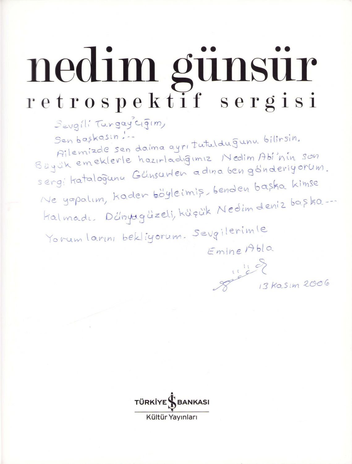 Nedim Günsür Retrospektif Sergisi, Birinci baskı, İstanbul 2006, 219 sayfa, 23x29 cm