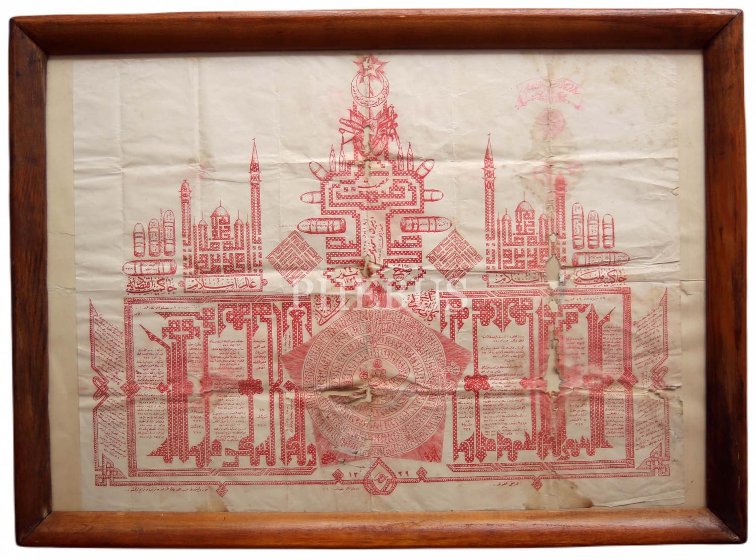 Osmanlıca propaganda afiş kolaj çalışması, "Sulh - 24 Temmuz 1339" "Alem-i İslam - Hakimiyet-i İktisadiye", "Hakimiyet-i Milliye" "İsmet, Kazım Karabekir, Ali Fuat", Derelioğlu Matbaası, 1339, haliyle, 66x47 cm
