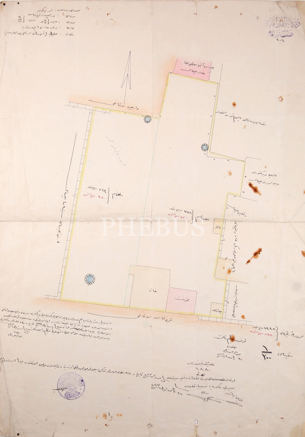 Mühendis Abdurrahman tarafından 1921 [1337] tarihinde çizilen Ortaköy Karakaş Sokağı önündeki ev ve kuyuların planı, haliyle, 31x46 cm
