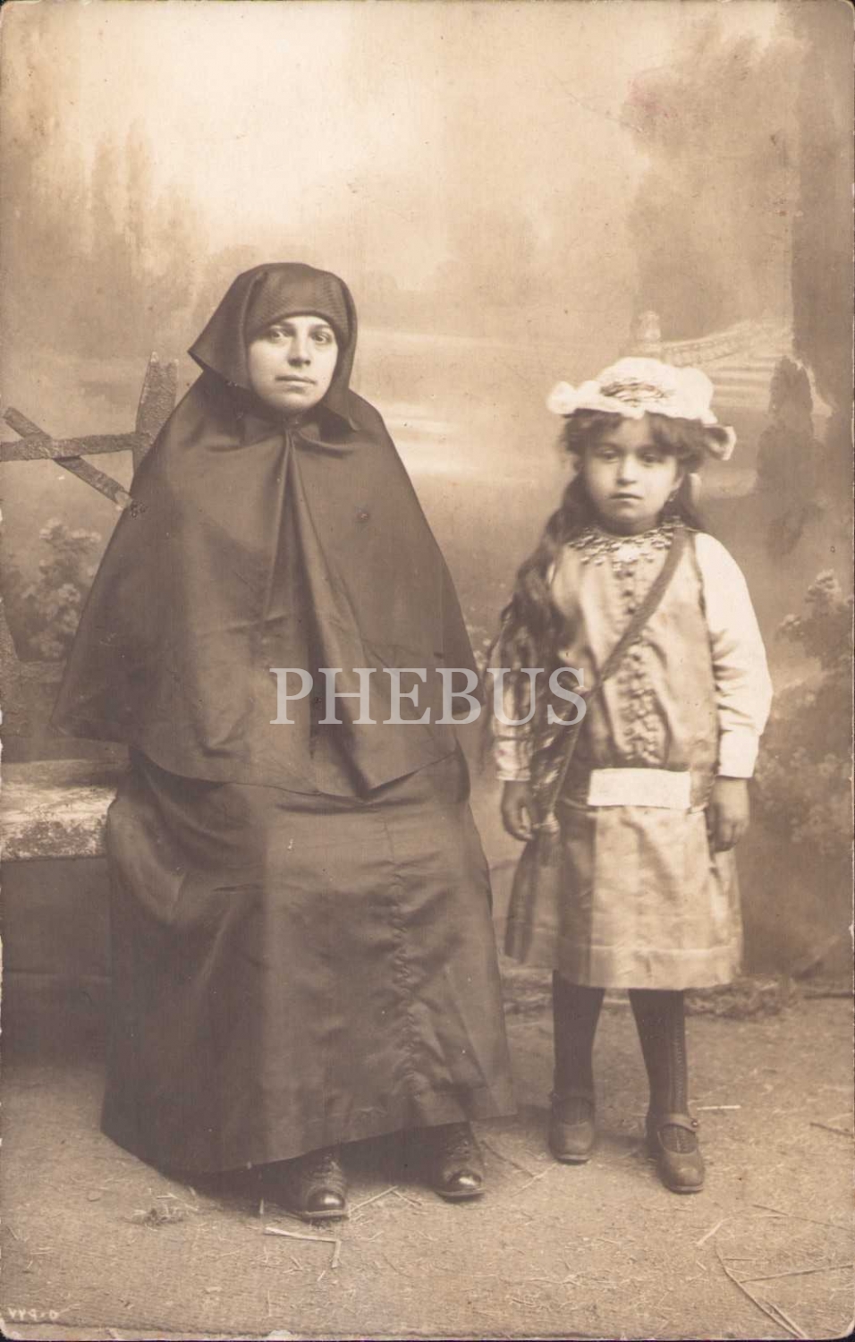 Osmanlı dönemi cüz çantalı çocuklar kabin fotoğrafı, arkası Osmanlıca İstanbul - Resne Fotoğrafhanesi damgalı, 8x10
