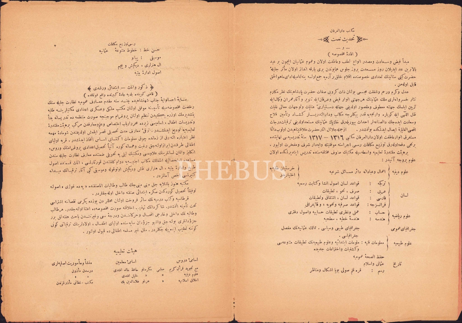 Kadıköy Darü'l İrfan Mektebi 1316 - 17 Senesi Mükafat Cetveli, Birinci baskı, Hanımlara Mahsus Gazete Matbaası, 1317, haliyle, 16 sayfa, 19x28 cm