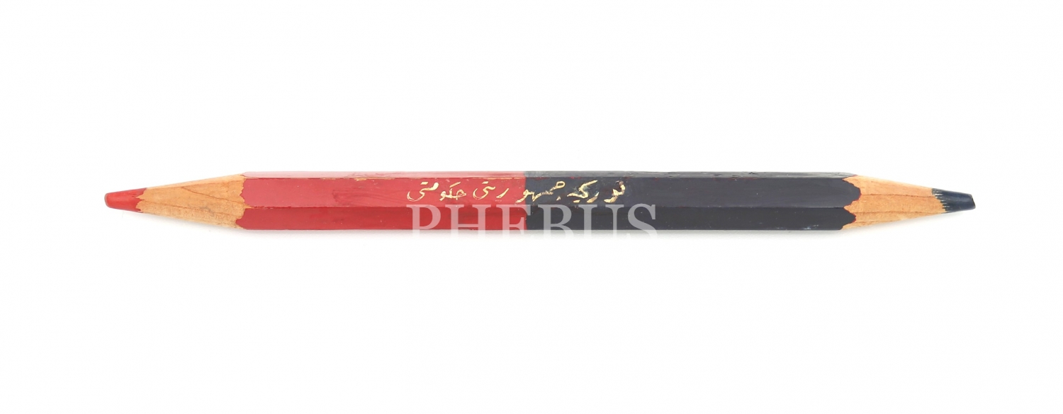 Osmanlıca Türkiye Cumhuriyeti Hükümeti yazılı, J. S. Staedtler marka çift renkli kurşun kalem, 15 cm
