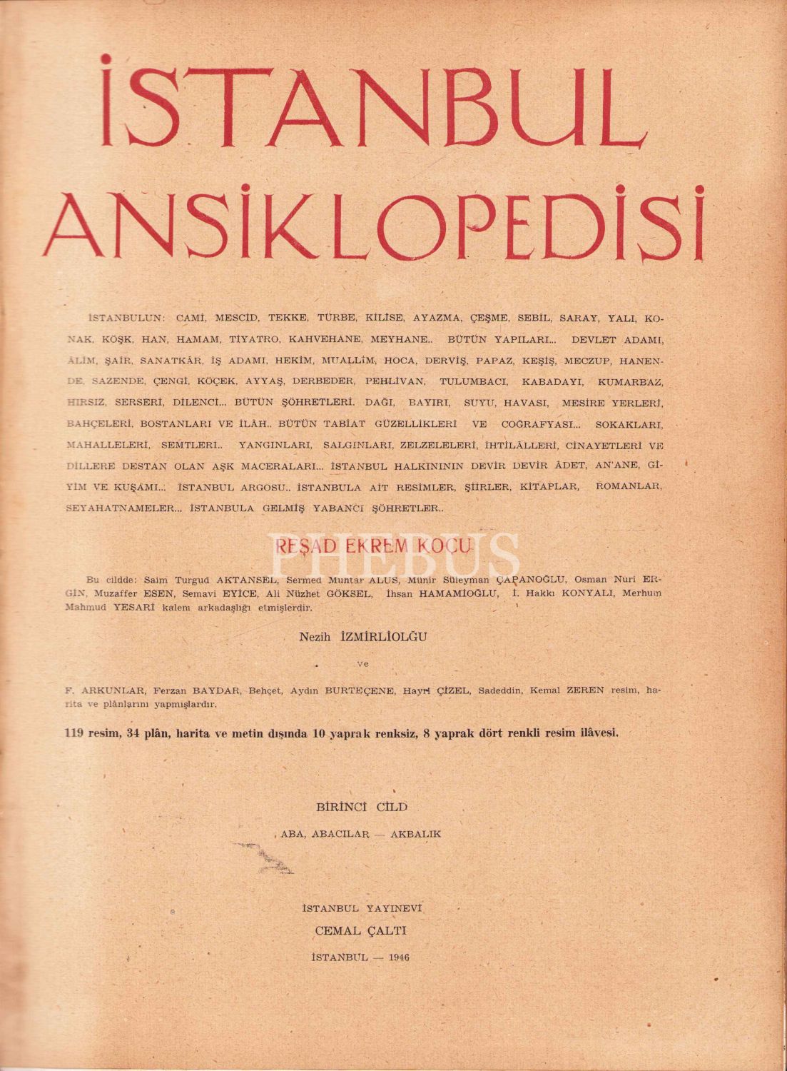 İstanbul Ansiklopedisi - Birinci Cilt, İstanbul 1946, resimli, 640 sayfa, 23x31 cm