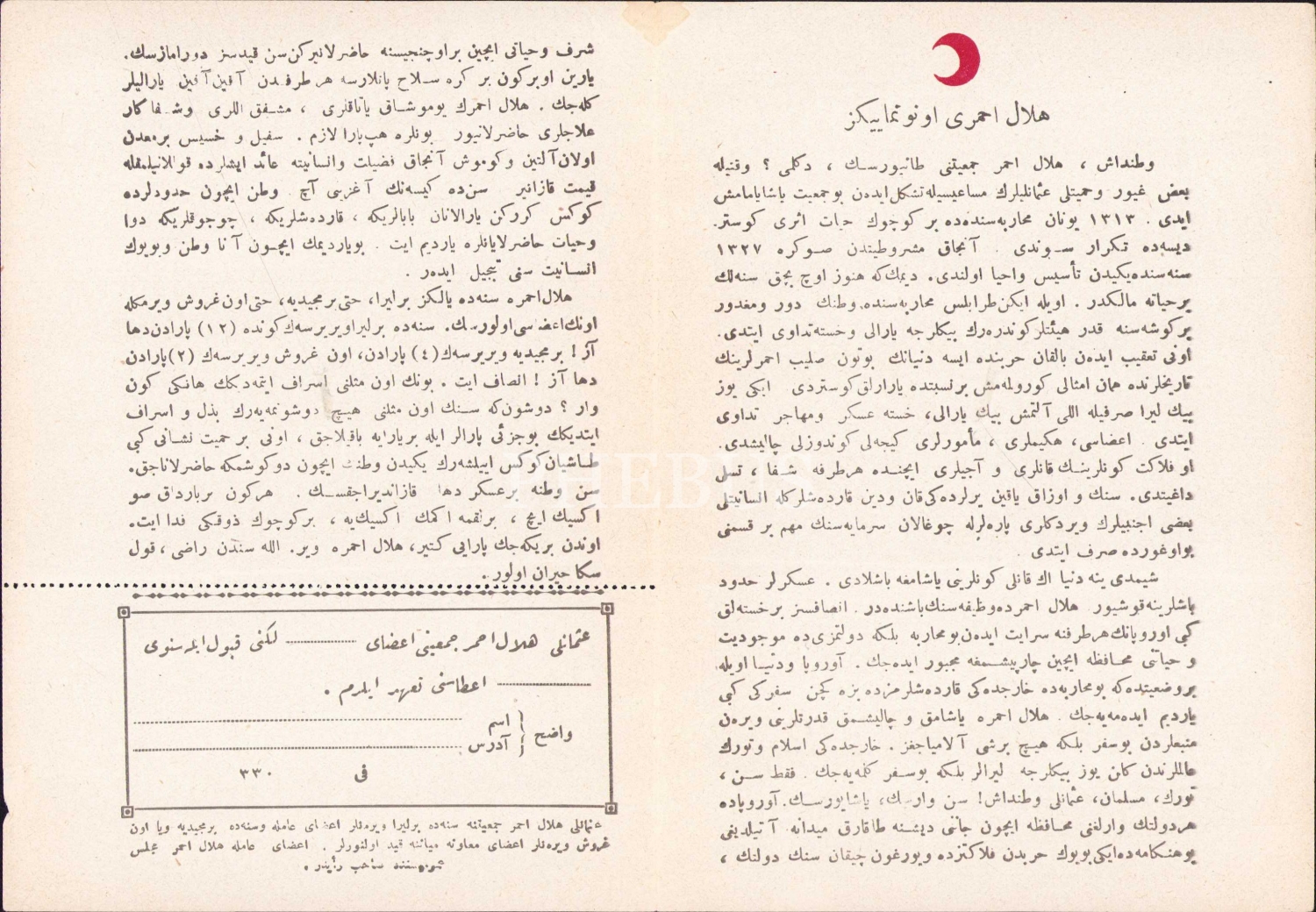 Osmanlı Hilal-i Ahmer Cemiyeti üyelik belgesi taahhüdü, 1330 [ 1914] tarihli, boş, 12x16 cm