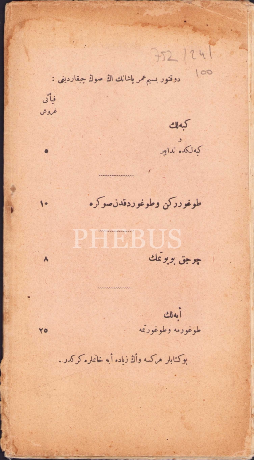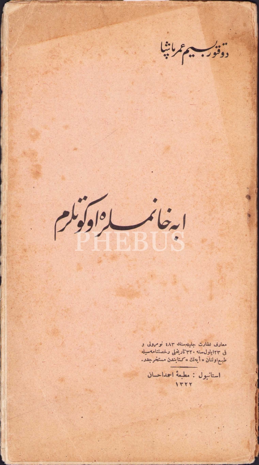 Osmanlıca Ebe Hanımlara Öğütlerim, Besim Ömer Paşa [Akalın], Ahmed İhsan Matbaası, İstanbul, 1322, resimli, sırt bir kenar haliyle, 43 sayfa, 12x22 cm