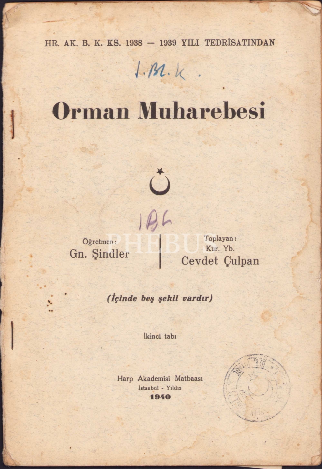 Orman Muharebesi, Gn. Şindler ve Cevdet Çulpan, Harp Akademisi Matbaası, 1940 tarihli, arka kapağı yok, 17x25 cm