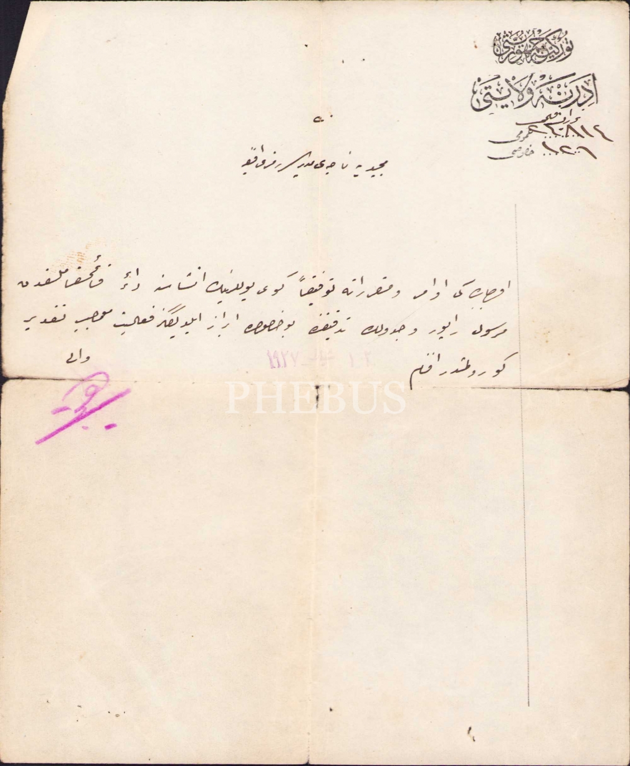 Türkiye Cumhuriyeti Edirne Vilayeti antetli, Vali tarafından nahiye müdürlüğüne yazılmış Osmanlıca belge, 1927 tarihli, 16x19 cm