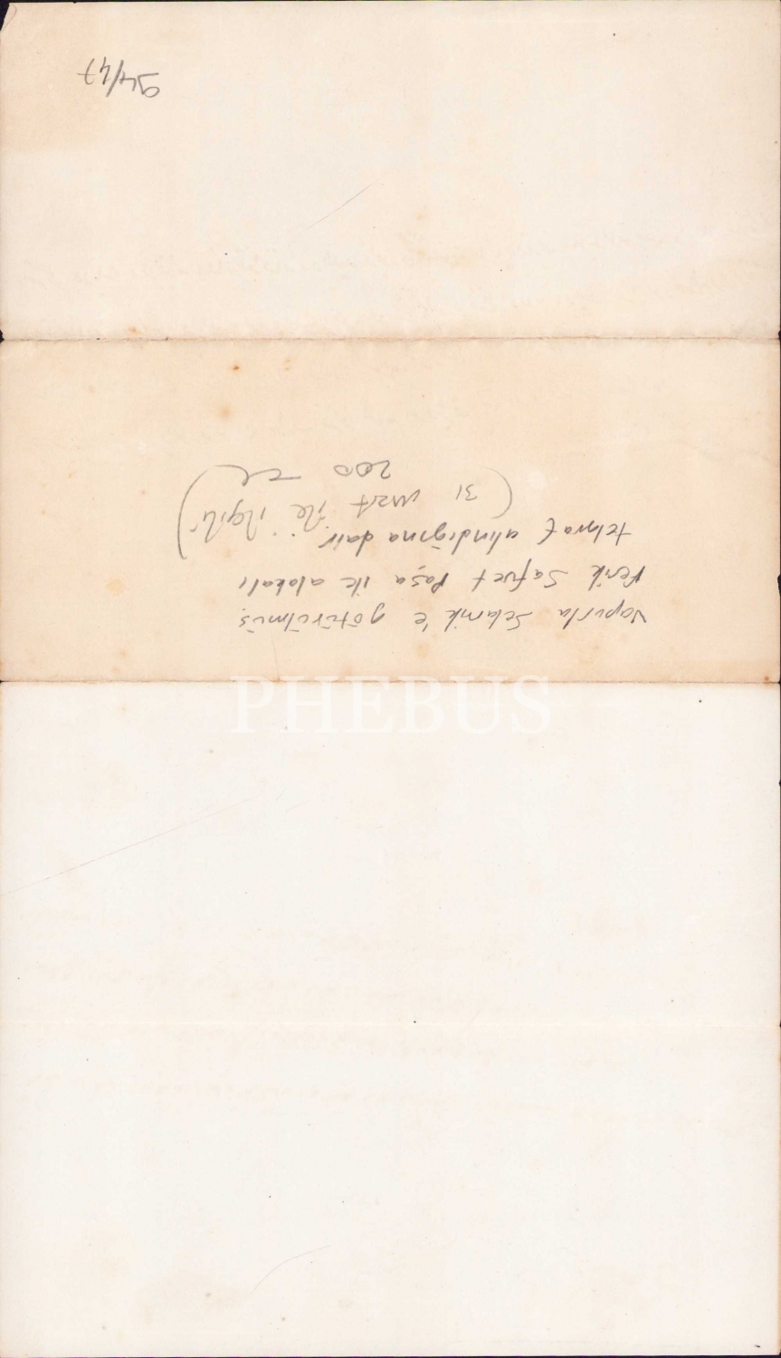 31 Mart Vakası ile ilgili Osmanlıca belge, vapurla Selanik'e götürülmüş olan Ferik Safvet Paşa ile ilgili, 17x29 cm
