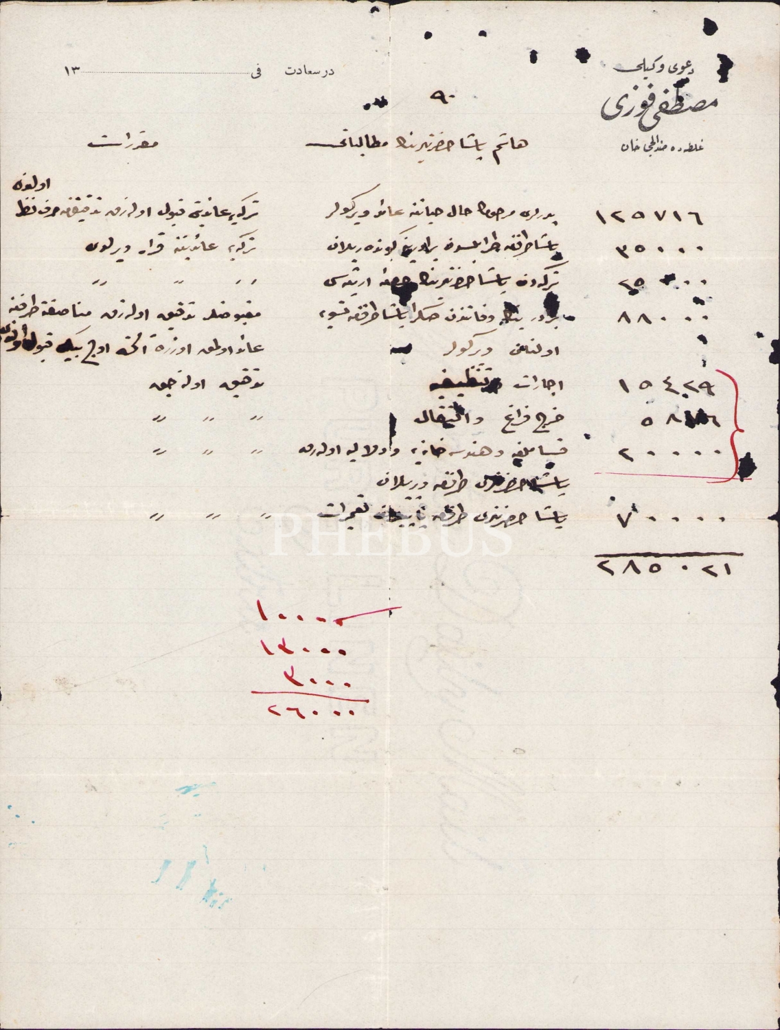 Osmanlıca Dava Vekili Mustafa Fevzi antetli Haşim Paşa'nın talepleri ve alınan kararların yazılı olduğu belge, 20x27 cm