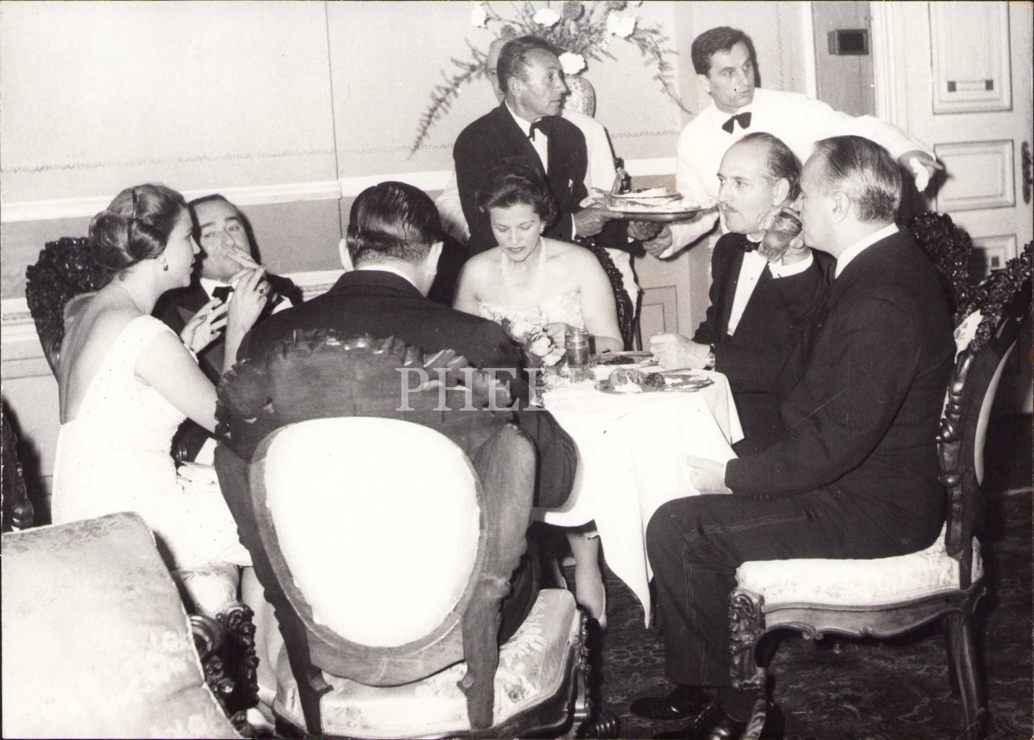 Adnan Menderes yemekte, arkası Rumca damgalı, 18x13 cm