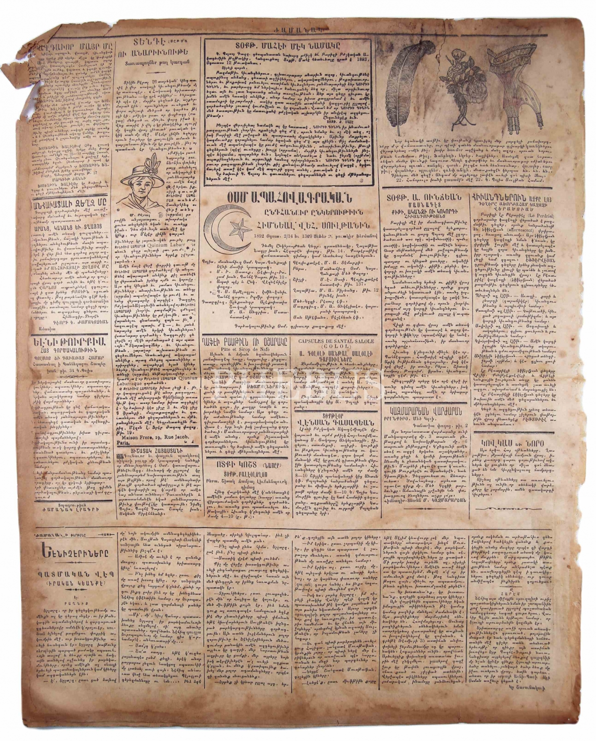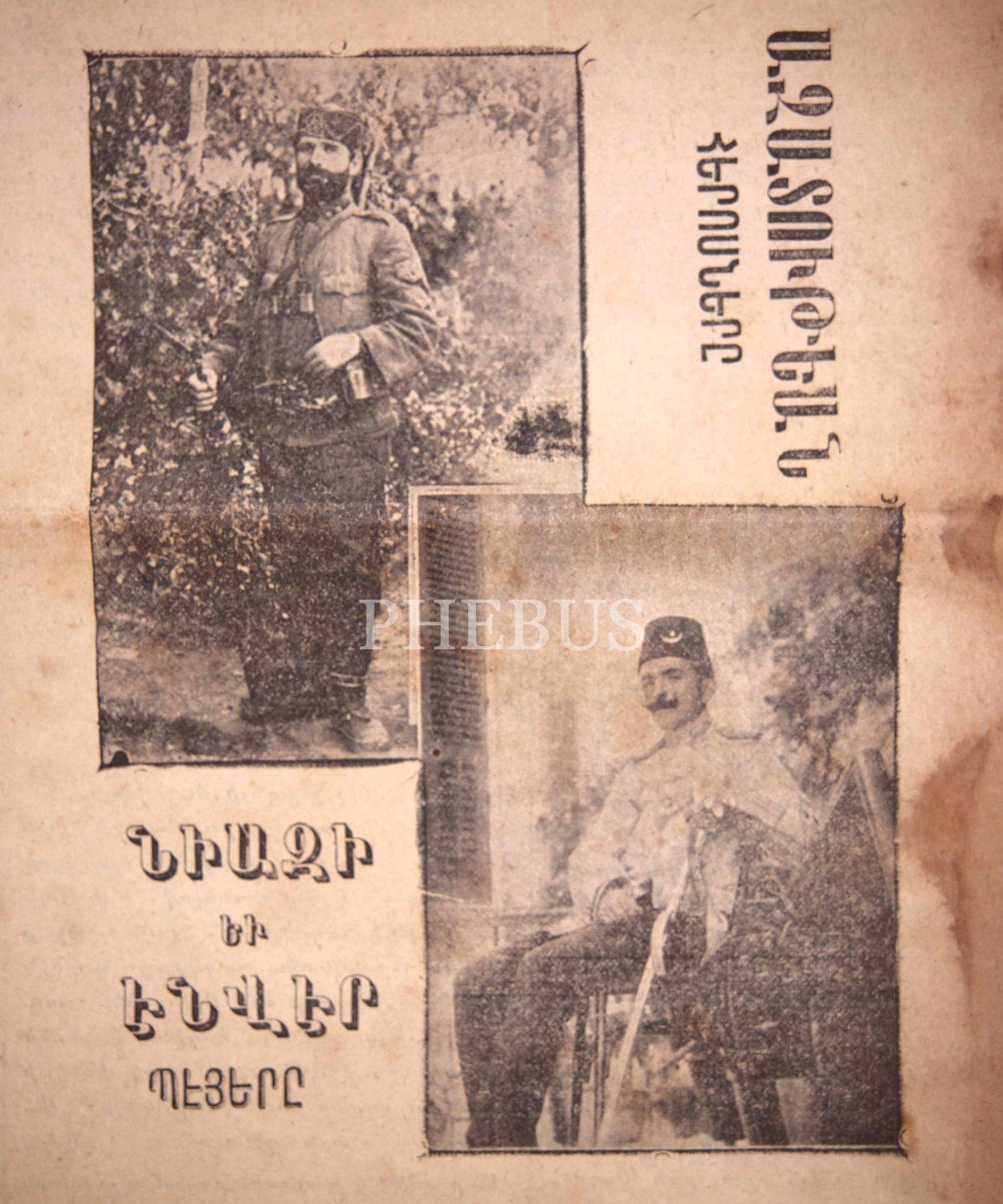 Ermenice Jarmanak Günlük ve Siyasi Mecmua, Resneli Niyazi ve Enver Paşa, "Osmanlı Meclisi Ayastefanos'ta","Zeytun Ermenileri Sisi Katillerinin Üzerine Yürüyorlar", 11-24 Nisan 1909 tarihli, haliyle, 4 sayfa, 44x56 cm