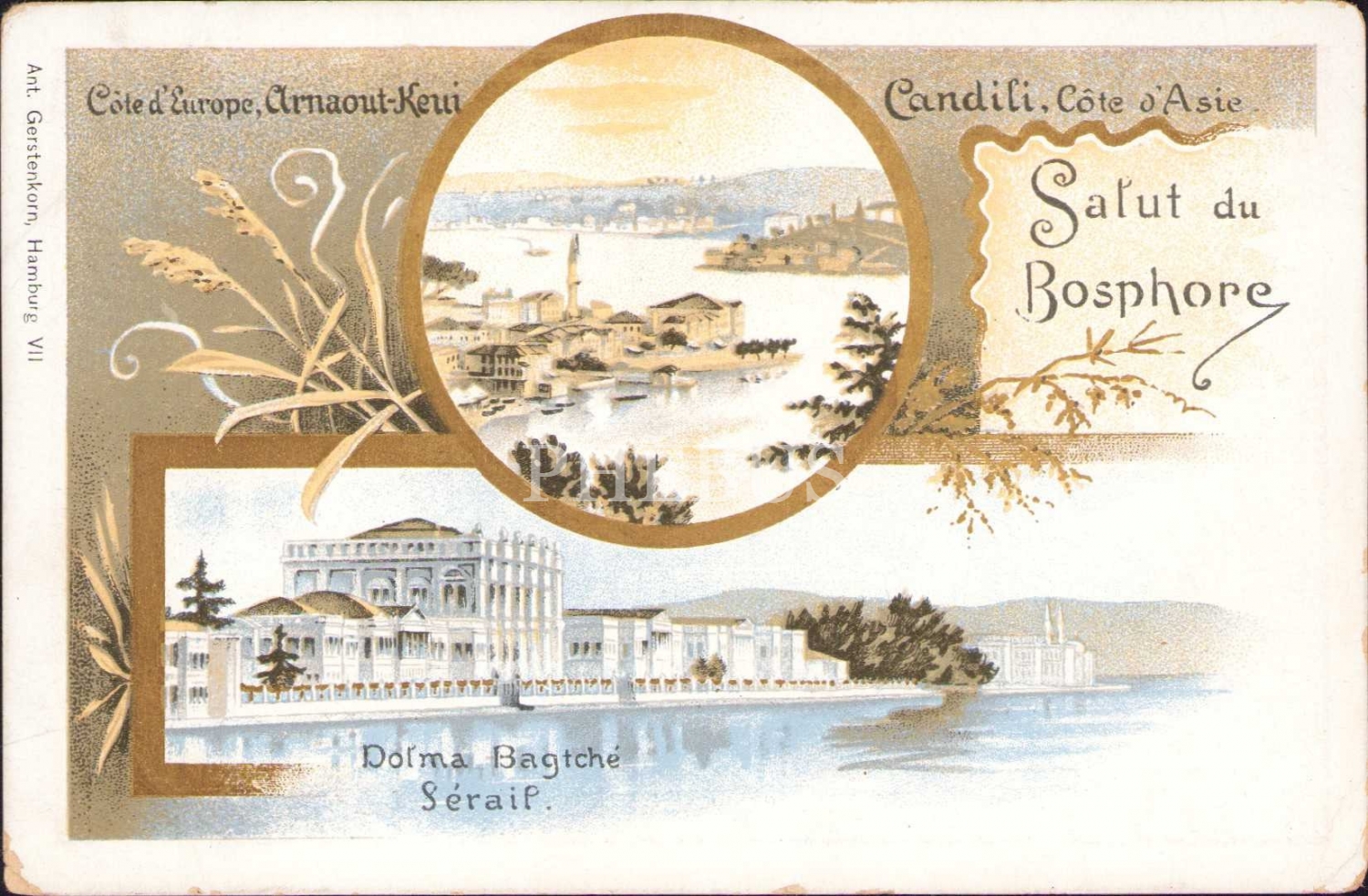 Osmanlı dönemi parçalı kartpostal, Constantinople, Arnavutköy, Kandilli, Ant Gerstenkorn