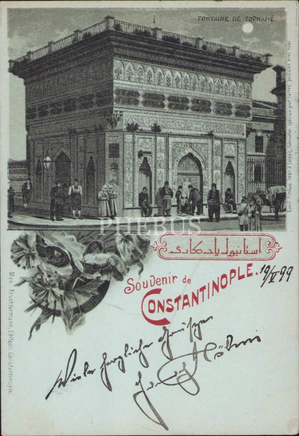 Osmanlı dönemi parçalı kartpostal, Tophane Çeşmesi, Editör Max Fruchtermann