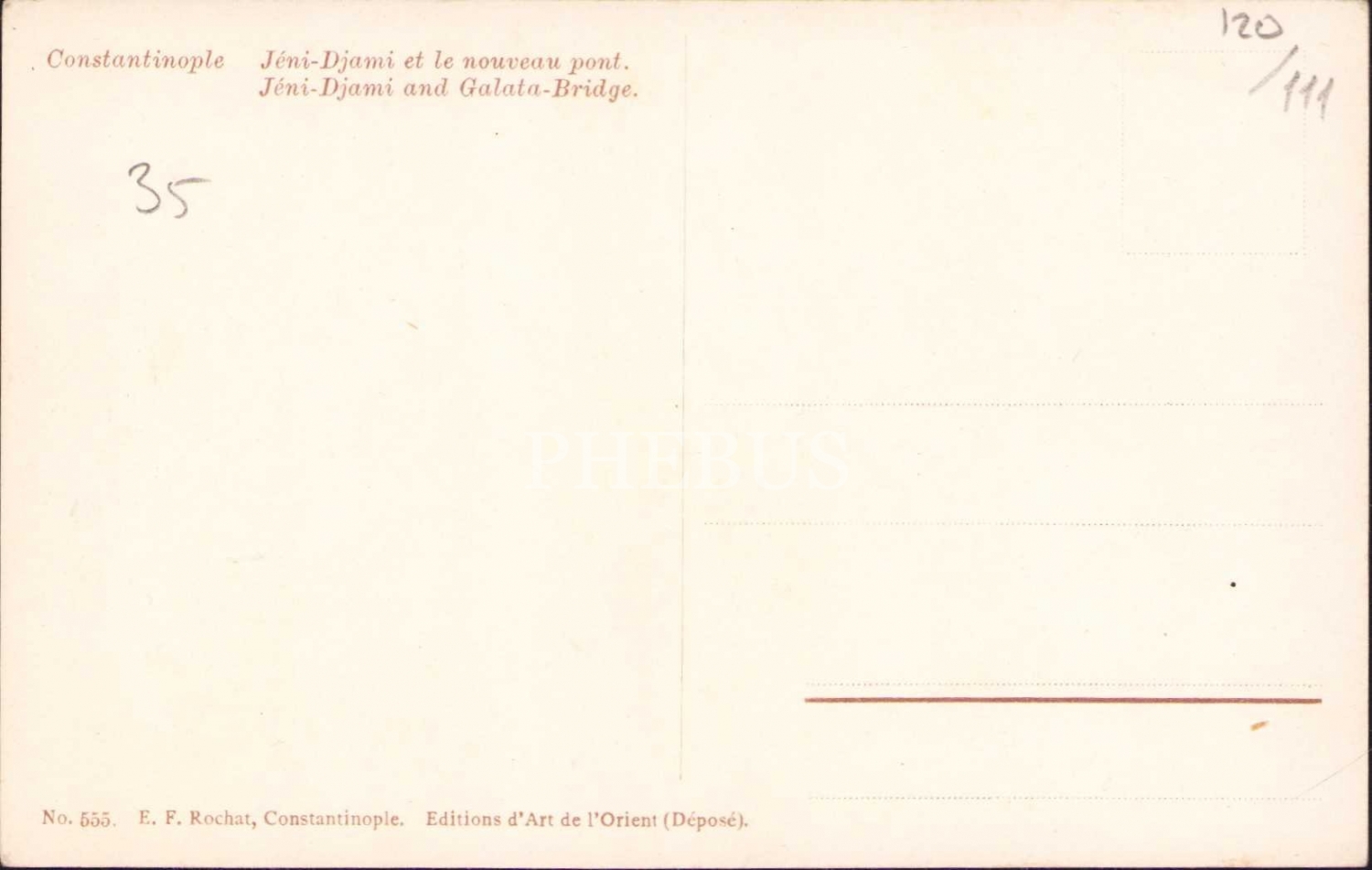 Osmanlı dönemi kartpostal, İstanbul, Yeni Camii ve Galata Köprüsü, Editör E. F. Rochat