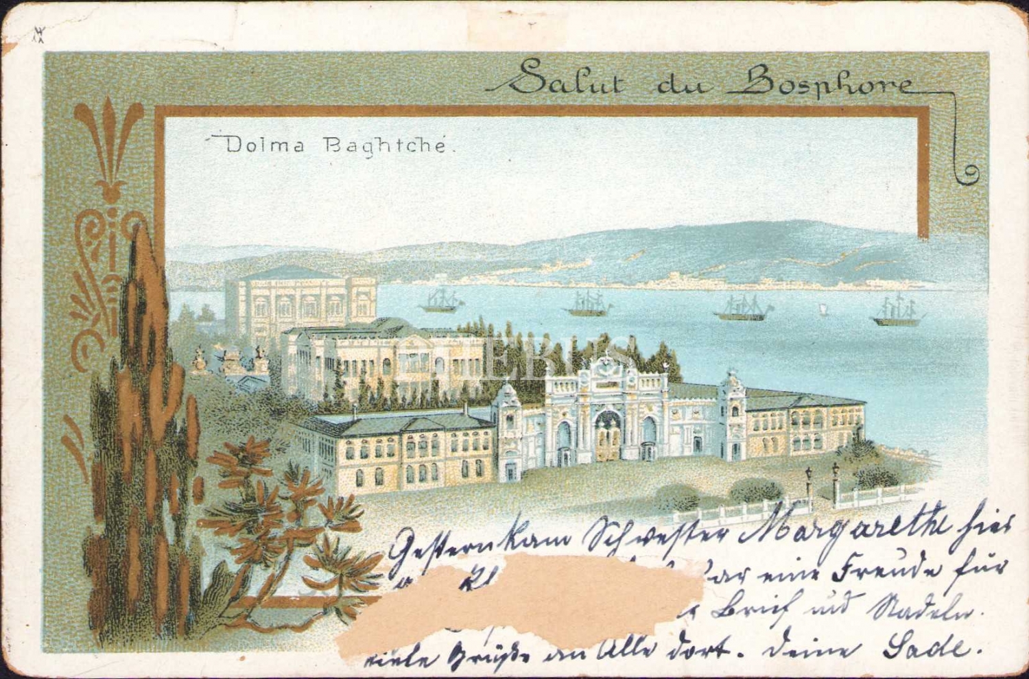 Osmanlı dönemi kartpostal, Dolmabahçe Sarayı, postadan geçmiş