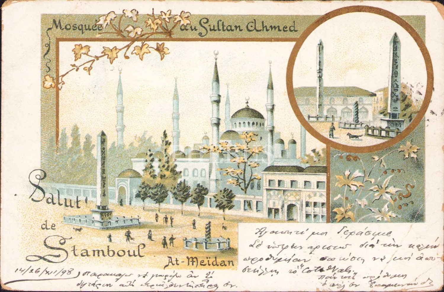 Osmanlı dönemi parçalı kartpostal, Sultanahmed Camii ve Atmeydanı