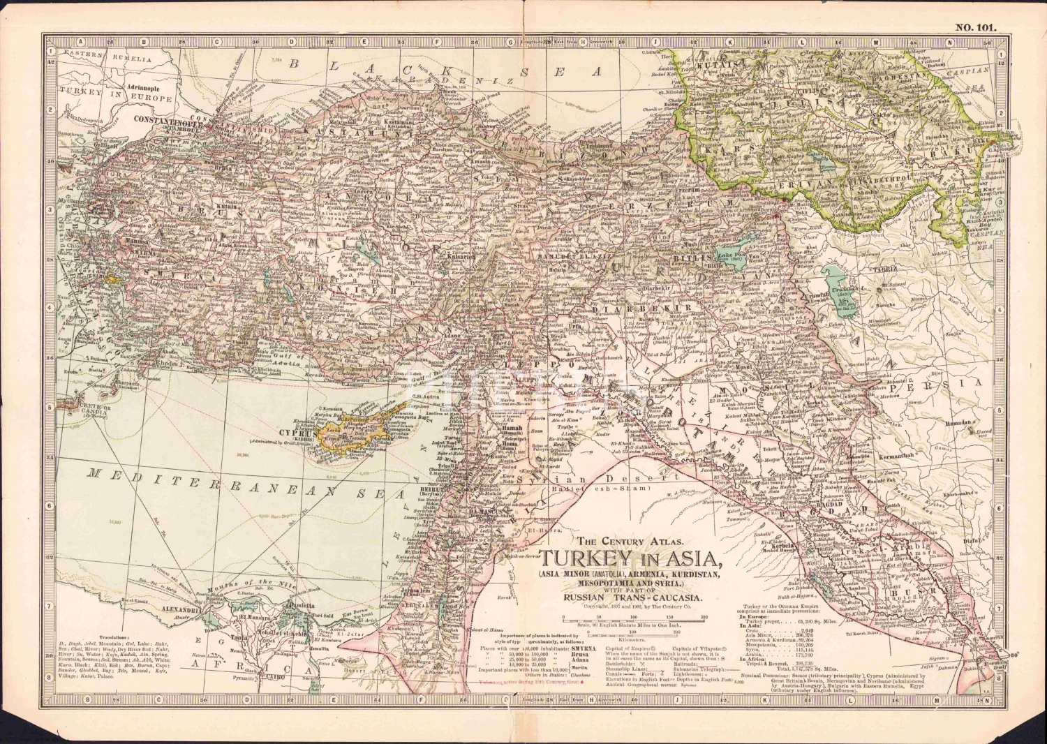 İngilizce Anadolu ve Mezopotamya Haritası, Turkey in Asia, haliyle, 40x30 cm