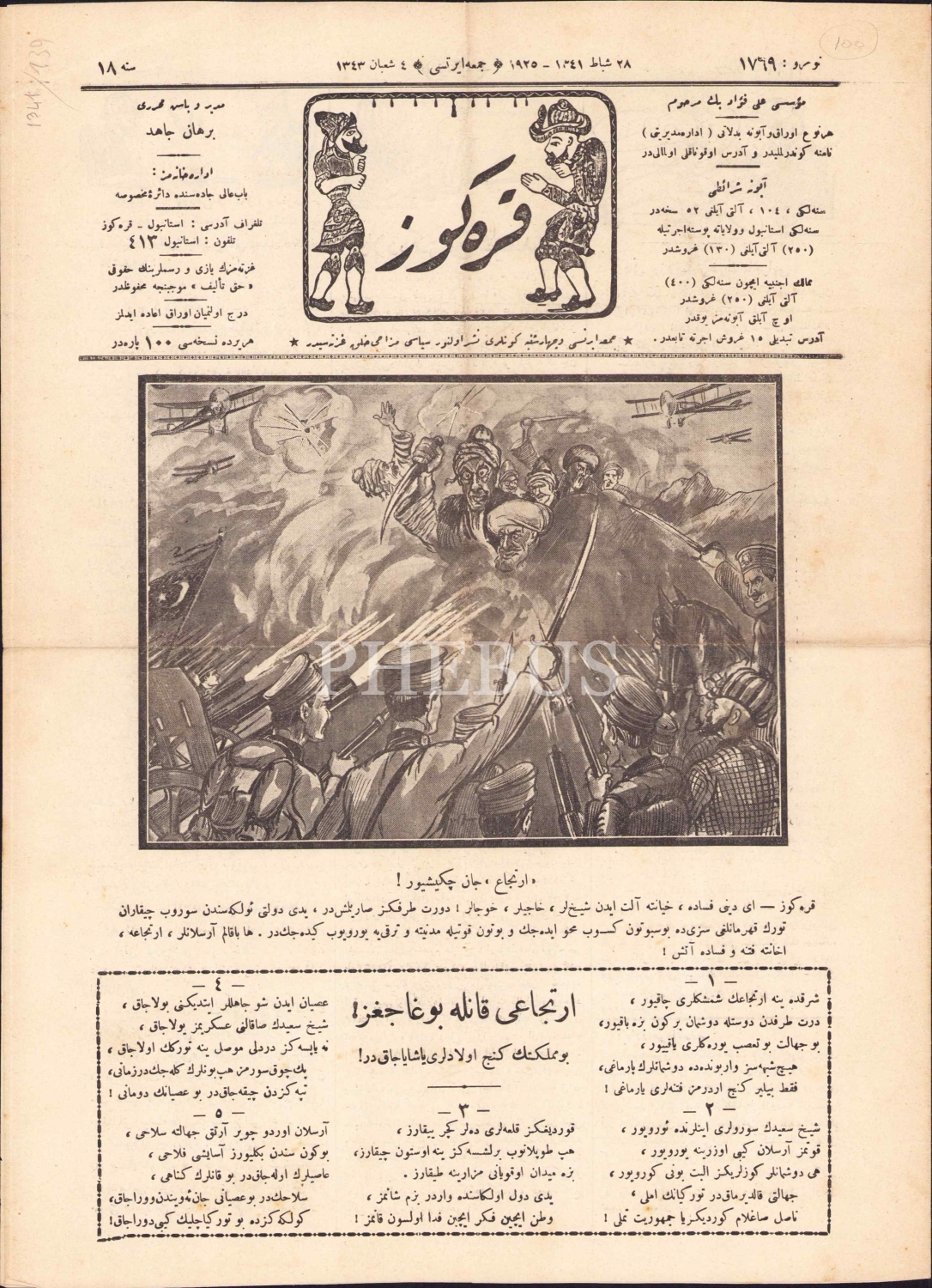 Osmanlıca Karagöz Mecmuası, "İrtica Can Çekişiyor", "İrticayı kanla boğacağız", 28 Şubat 1925 tarihli, 4 sayfa, 28x40 cm