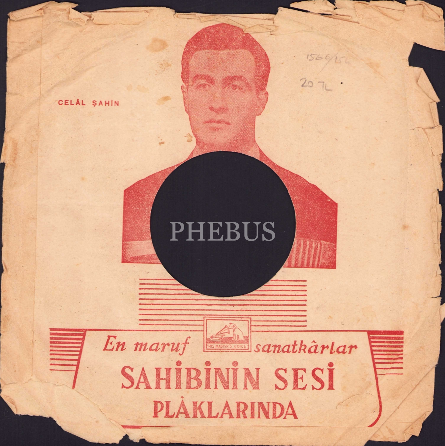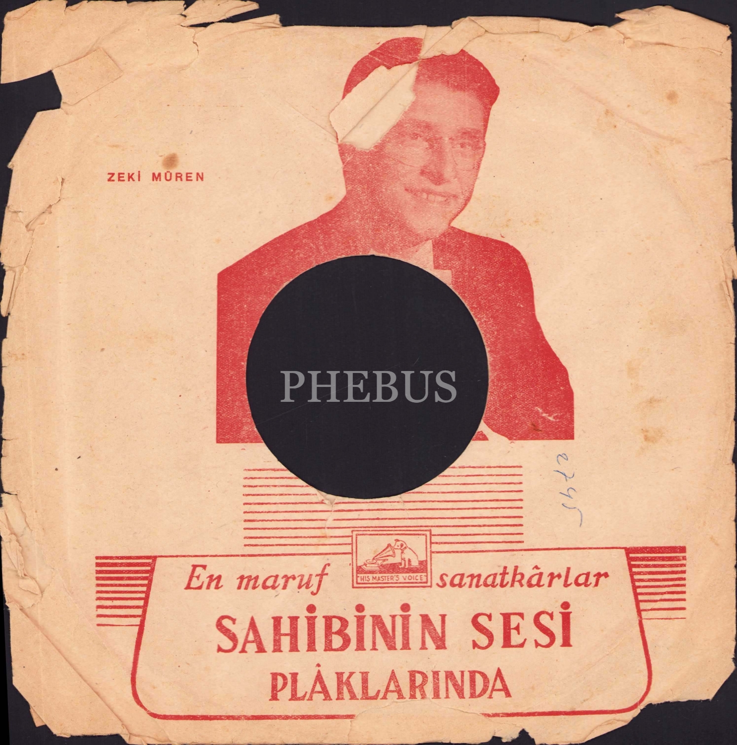 Celal Şahin ve Zeki Müren görselli Sahibinin Sesi plak kabı, haliyle, 23x25 cm