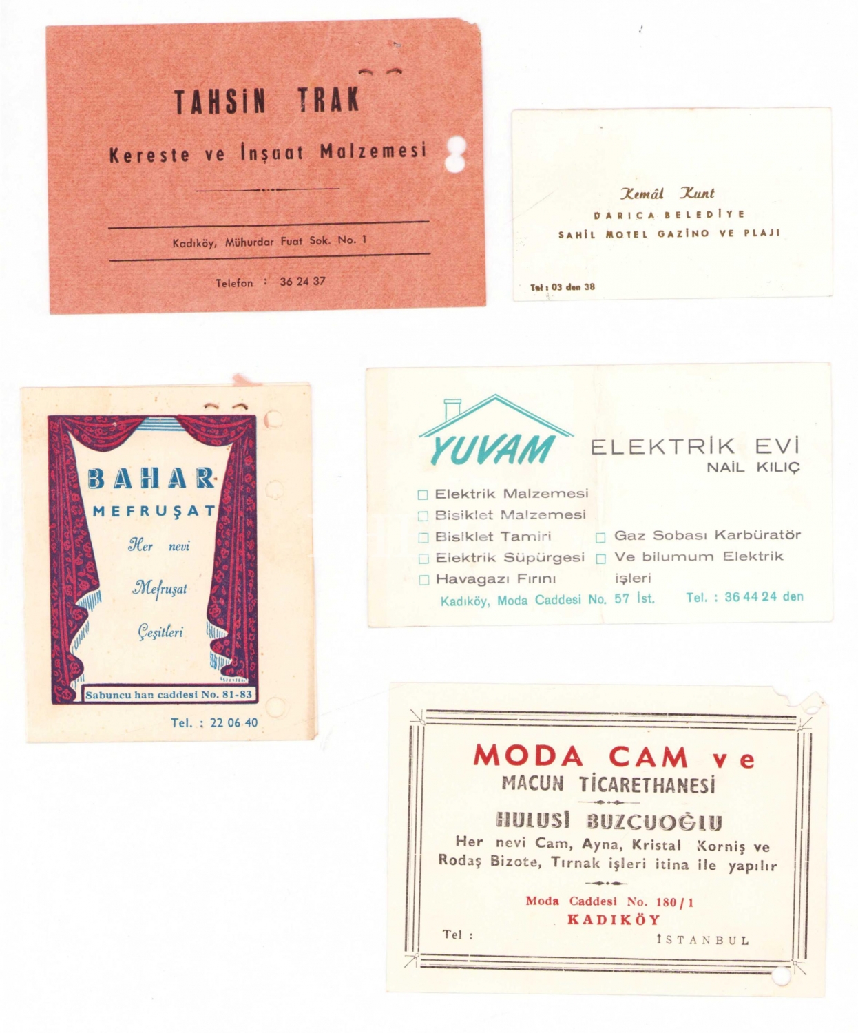1960'lar Beş Ticari Kart [Bahar, Tahsin Trak, Moda Cam, Yuvam, Darıca Plajı], muhtelif ebatlarda