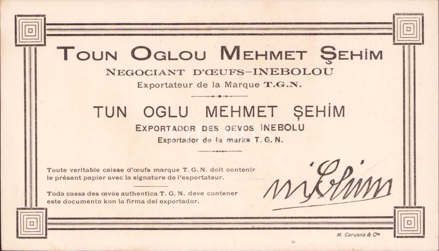 Tun Oğlu Mehmet Şehim iş yeri kartı, 17x9,5 cm