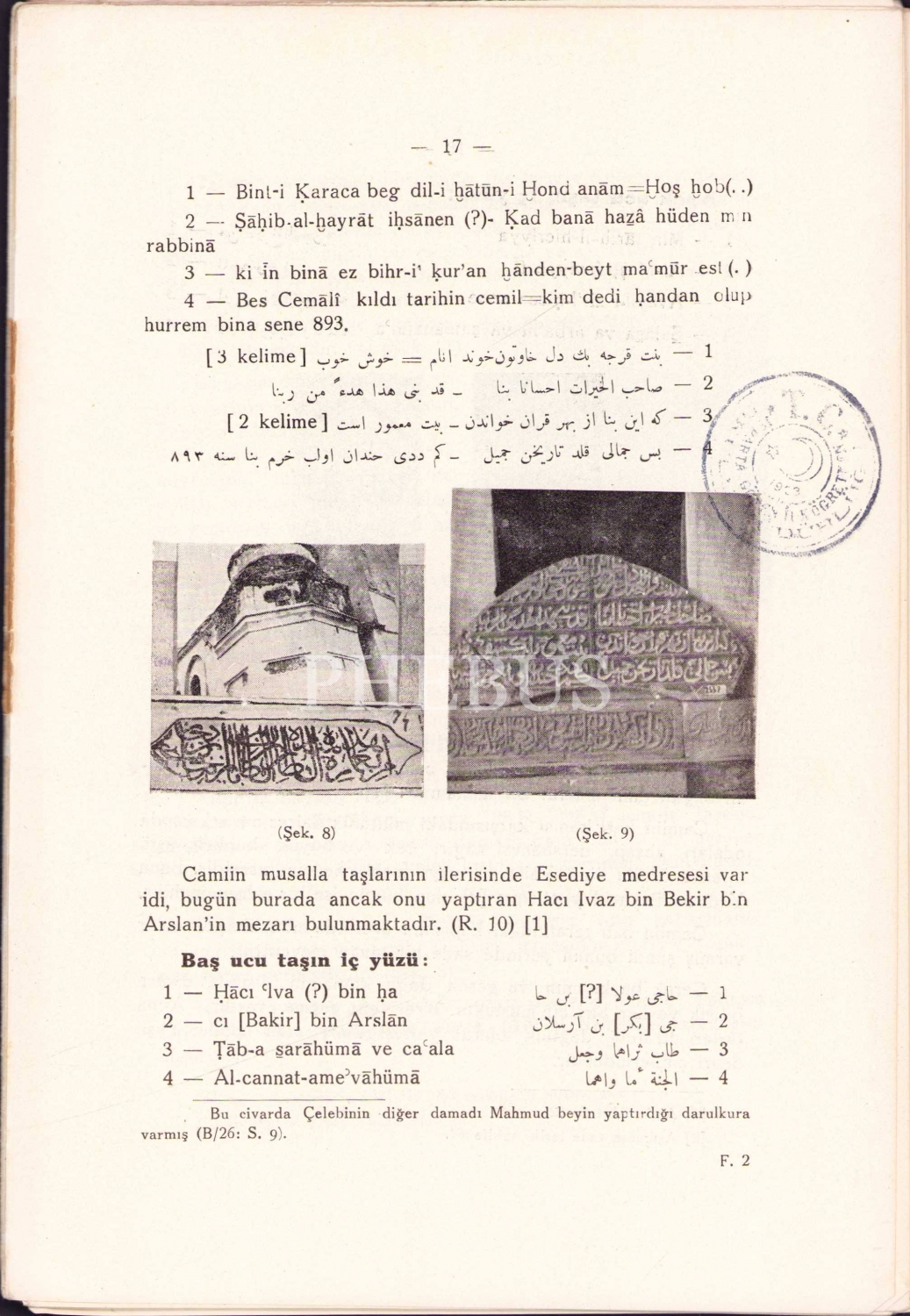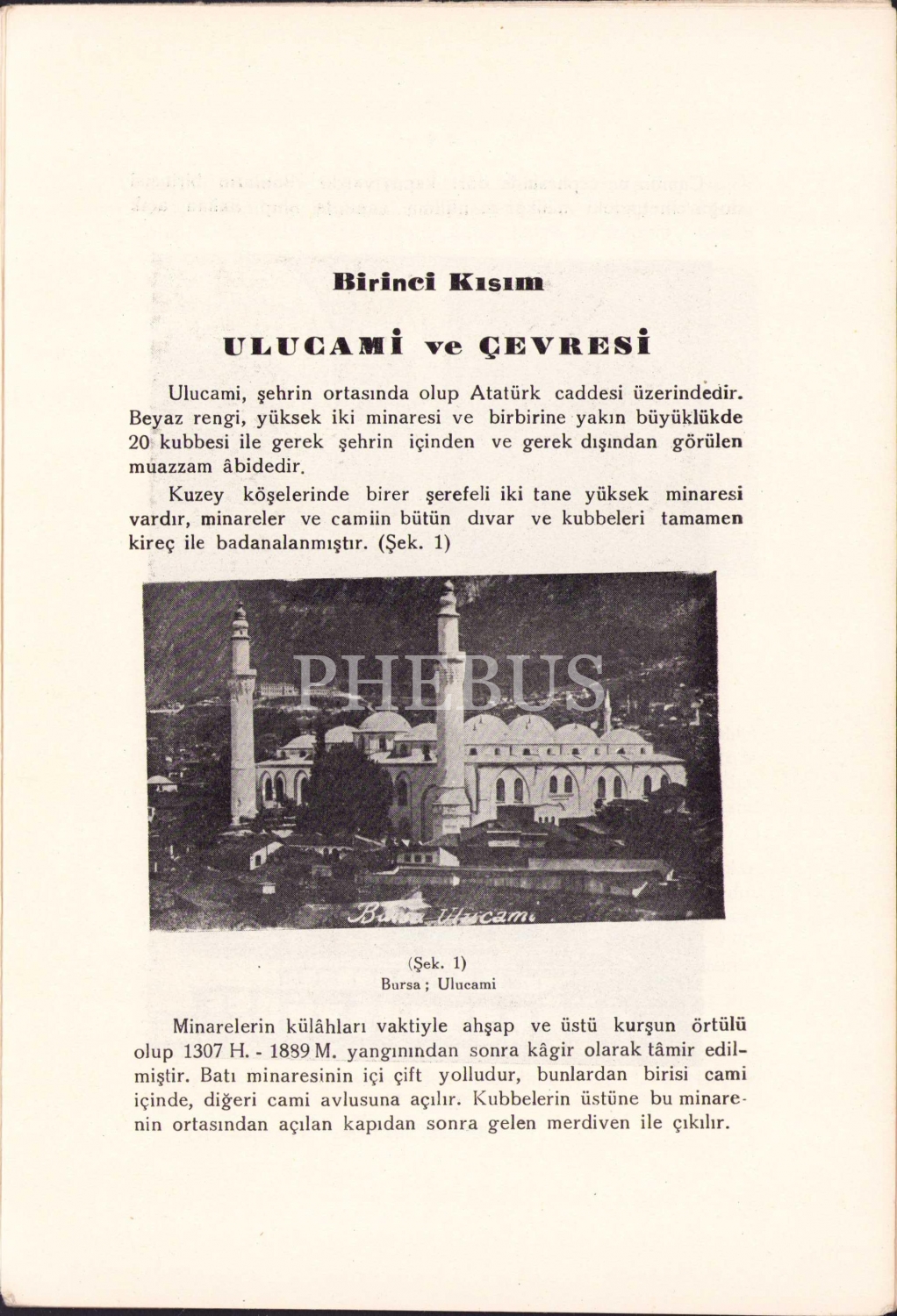 Bursa'da Ulu Cami, Kazım Baykal, 1950 tarihli, sırtı ve arka kapağı yok, bol fotoğraflı ve levhalı, 17x24 cm