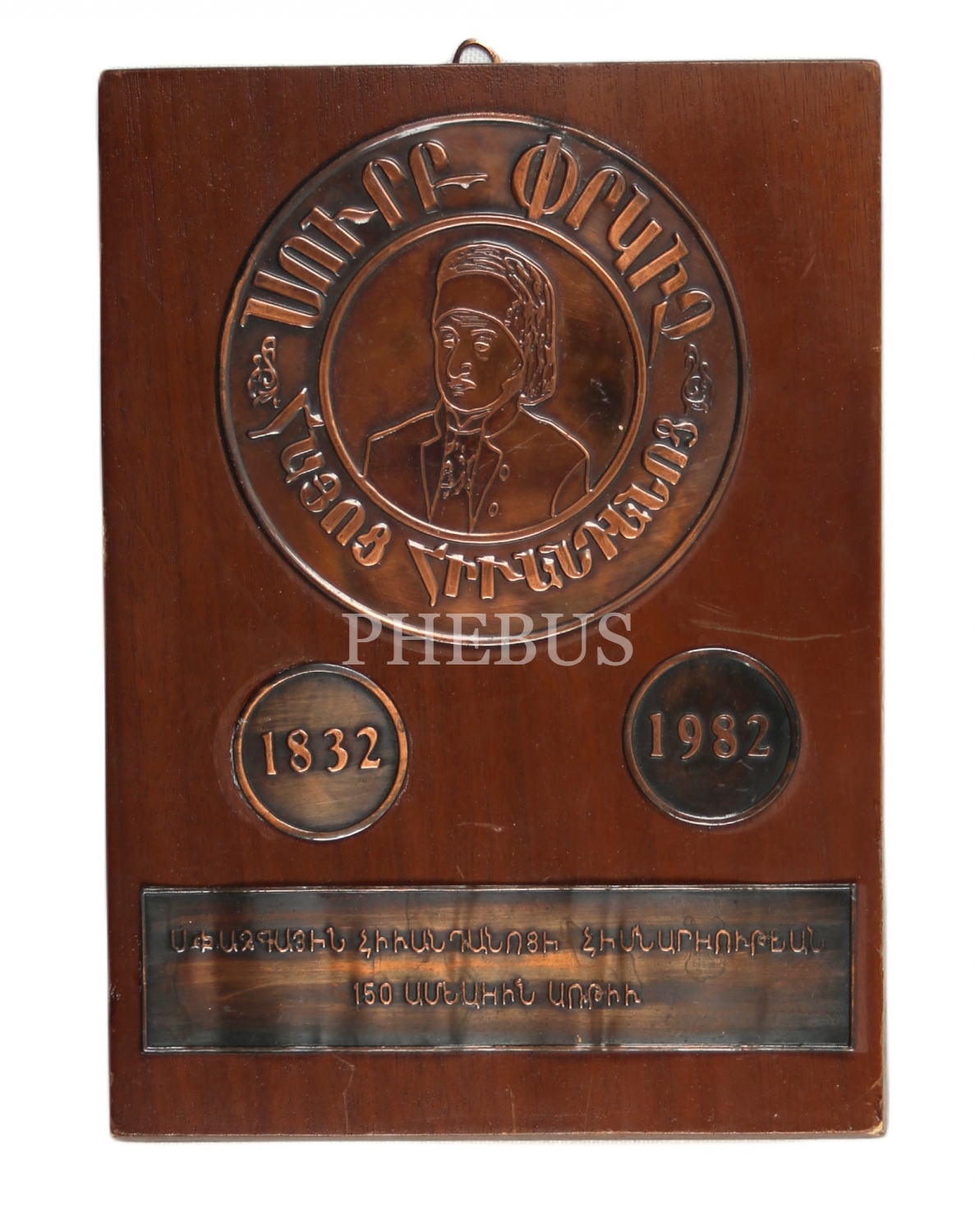 Ermeni Surp Pirgiç Hastanesi 150.yılı Bakır Plaket, Haruyun Amira Bezciyan [II. Mahmud'un Yakın Dostu], kabartma resmi ve yazılı, Ermenice, 15x21x2 cm