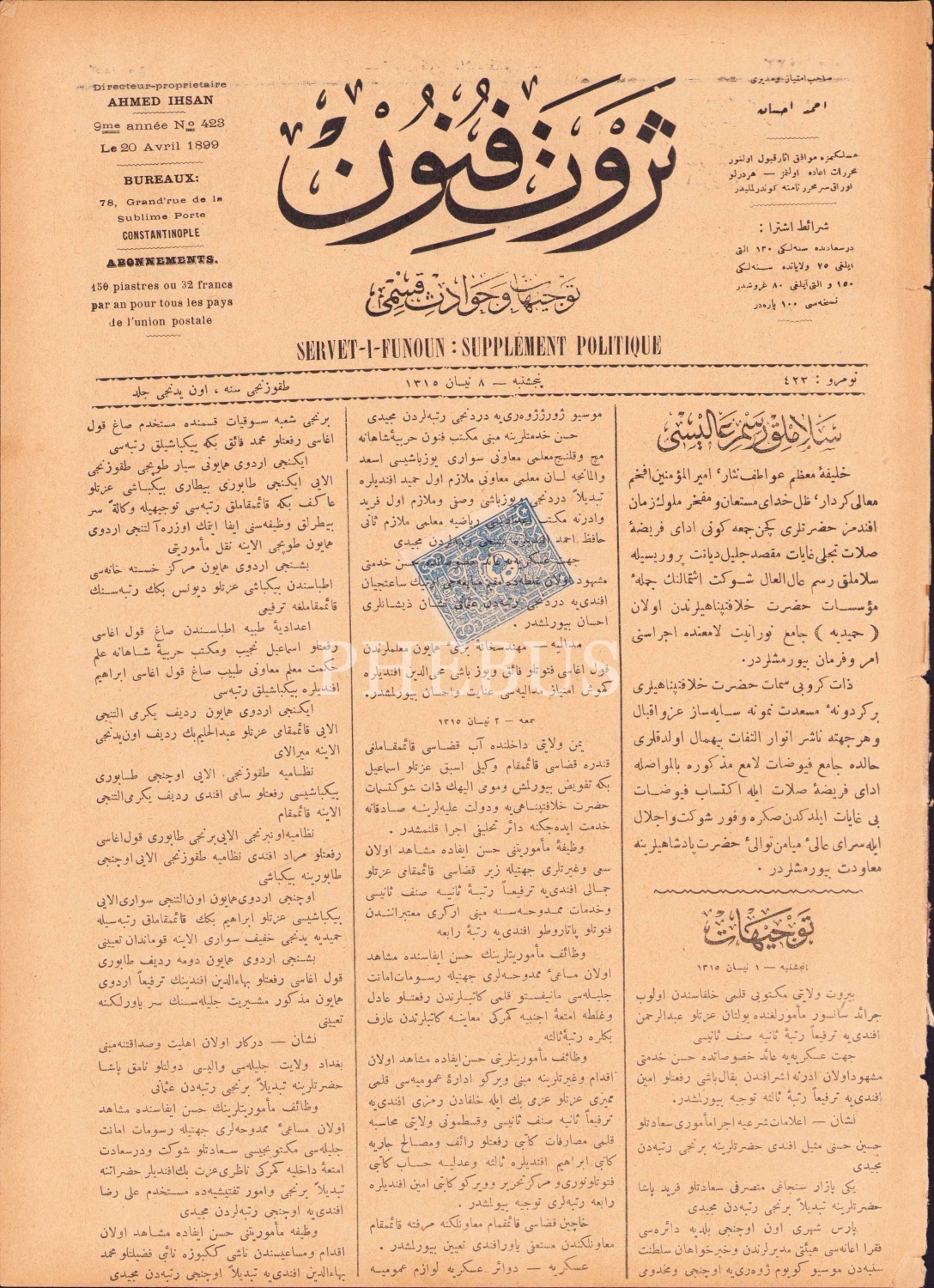 Osmanlıca Servet-i Fünun Mecmuası, 8 Nisan 1315 tarihli, 8 sayfa, 24x34 cm