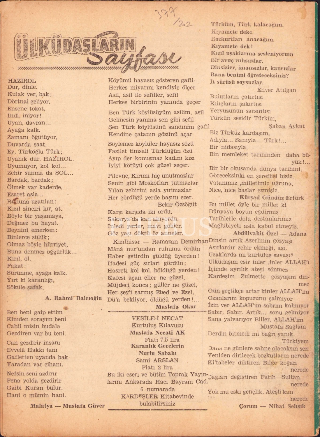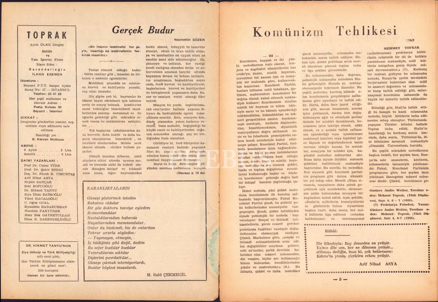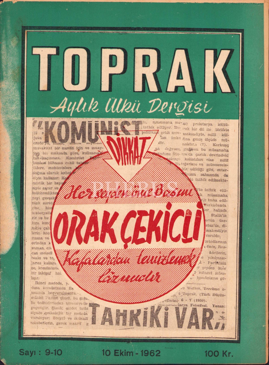 Toprak Aylık Ülkü Dergisi, Sayı: 9-10, 10 Ekim 1962 tarihli, 20 sayfa, 20x28 cm
