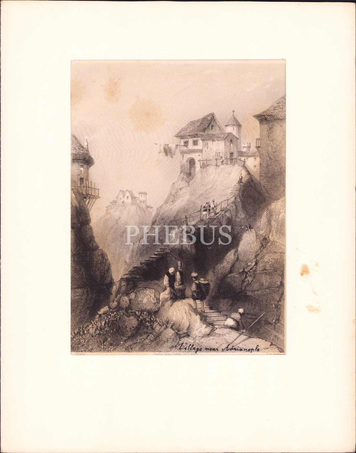Edirne yakınlarında bir köy, gravür, 13x18 cm