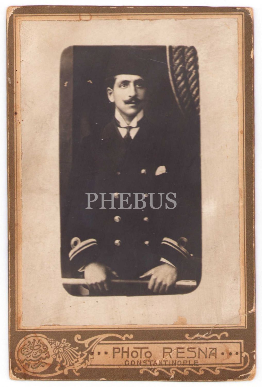 Osmanlı dönemi bahriyeli subay, Foto Resna, Constantinople, bir kenarı kırık, 11x16,5cm