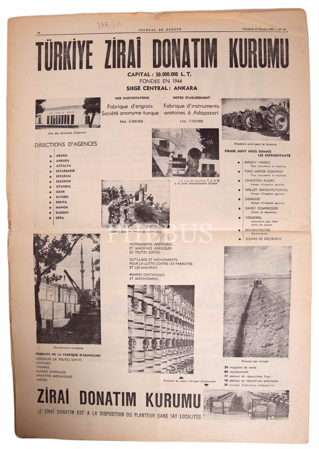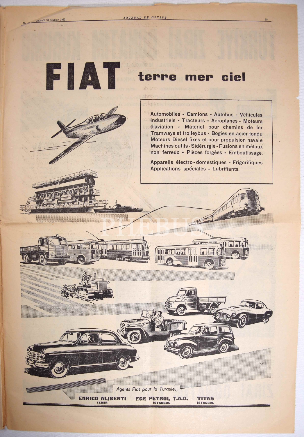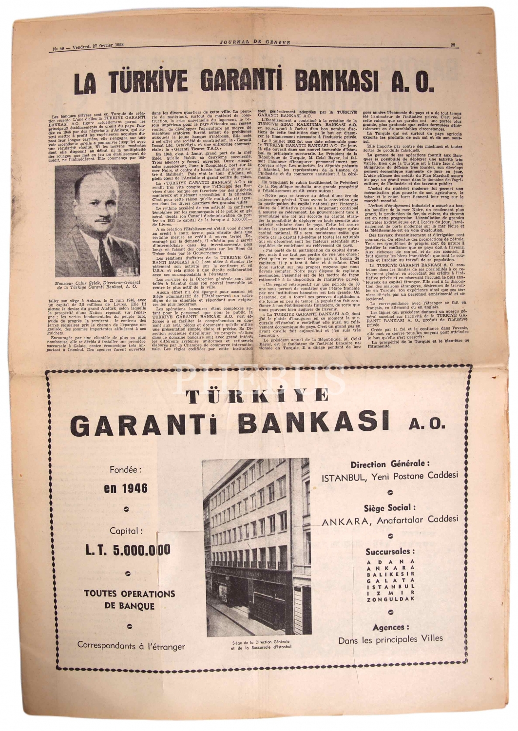 Journal de Geneve, 27 Şubat 1953 tarihli, 26x35 cm