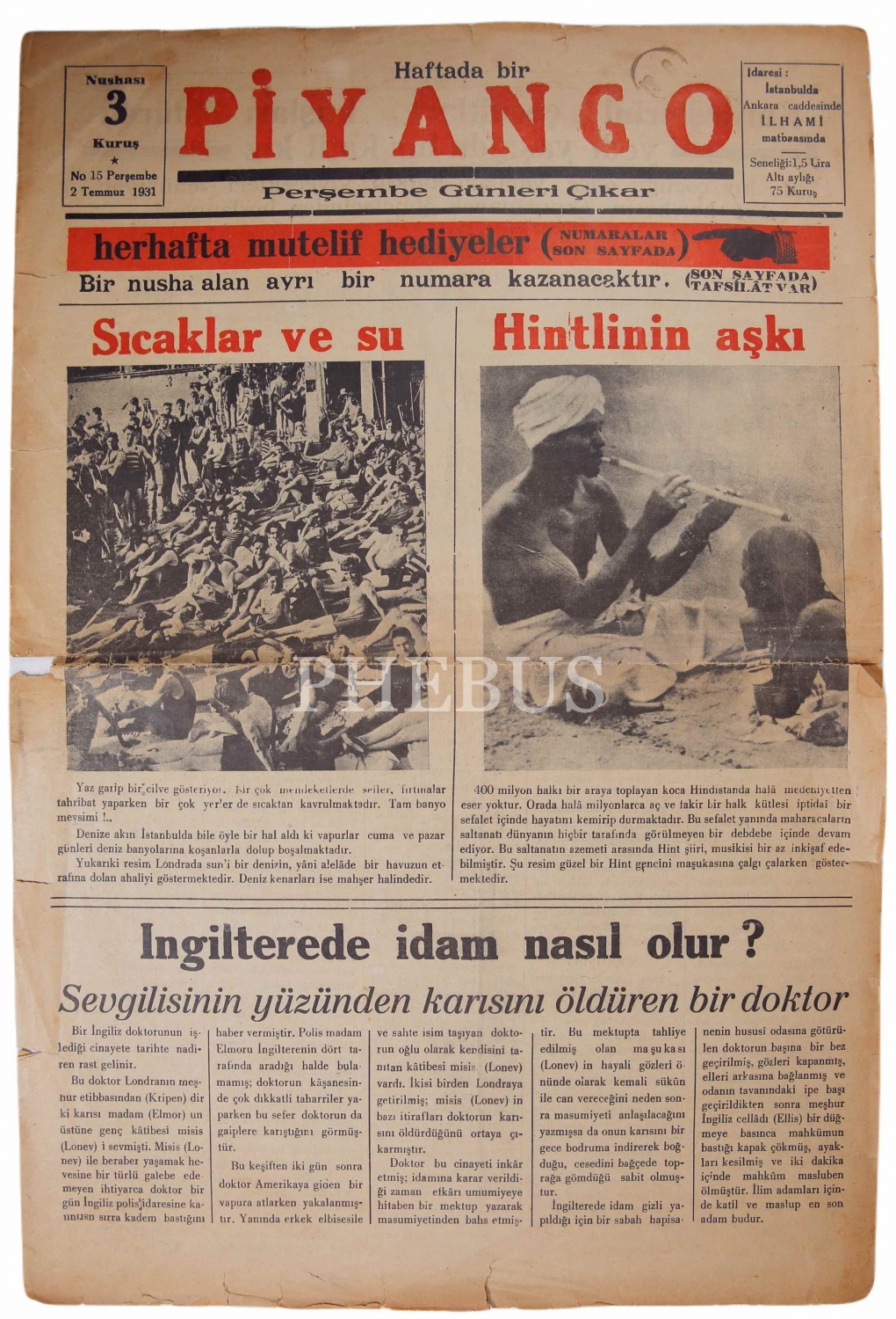 Piyango gazetesi, 2 Temmuz 1931 tarihli, 4 sayfa, 31x40 cm