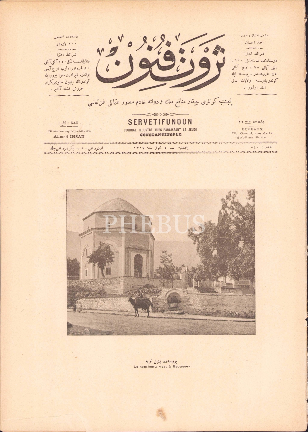 Osmanlıca Servet-i Fünun mecmuası, Kapak: Bursa'da Yeşil Türbe, 5 Temmuz 1318 tarihli, 16 sayfa, 25x33 cm