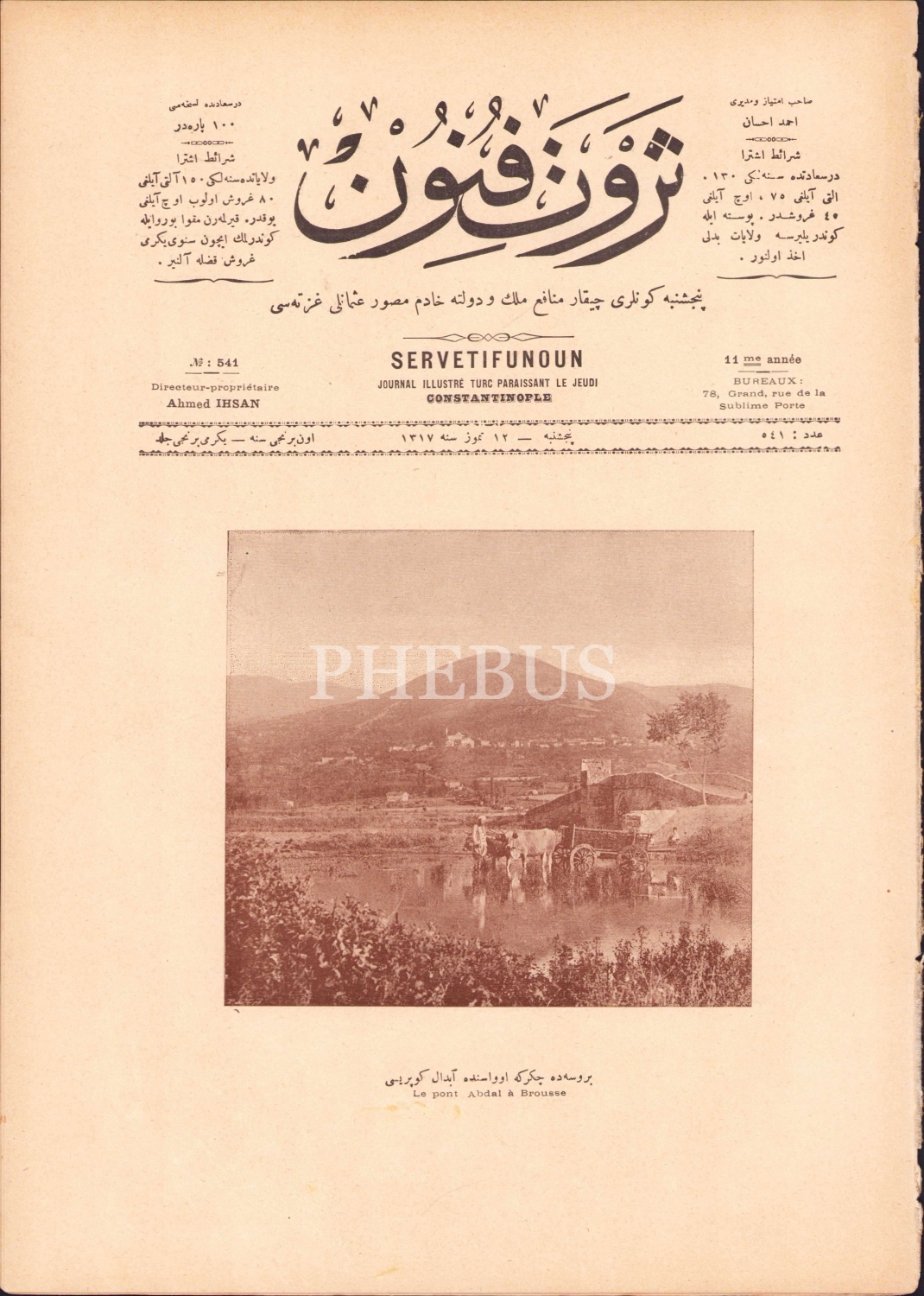 Osmanlıca Servet-i Fünun mecmuası, Kapak: Bursa'da Çekirge Ovası'nda Abdal Köprüsü, 12 Temmuz 1317 tarihli, 16 sayfa, 25x33 cm
