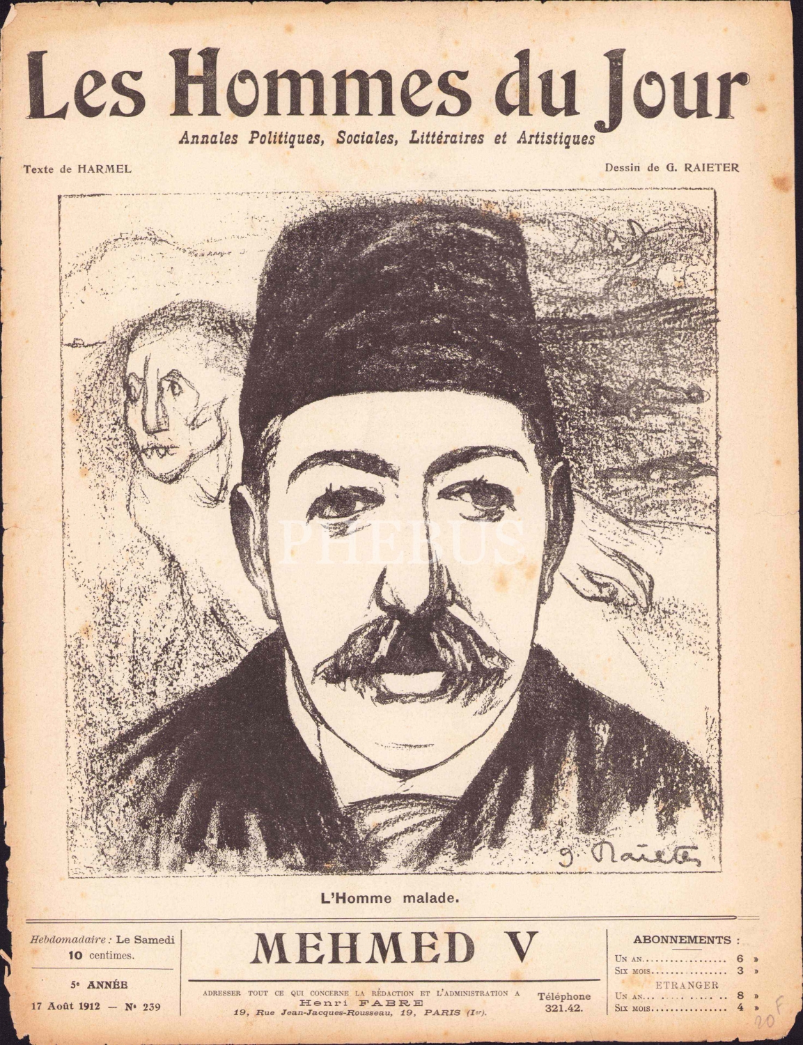Sultan Mehmed Reşad kapaklı Les Hommes du Jour, yalnızca kapak, 17 Ağustos 1912 tarihli, 25x32 cm